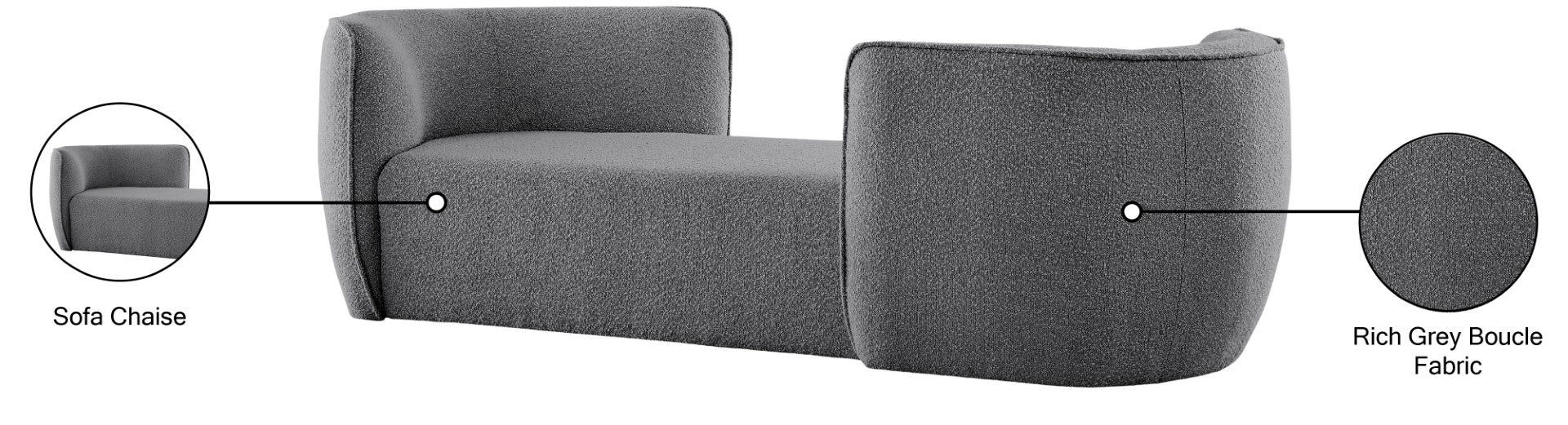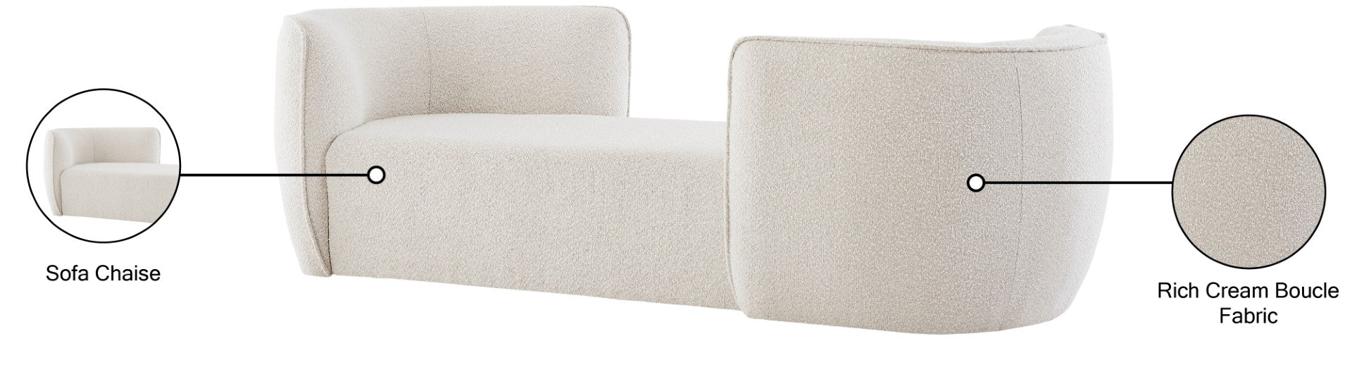 - Material: Boucle Fabric / Engineered Wood / Foam