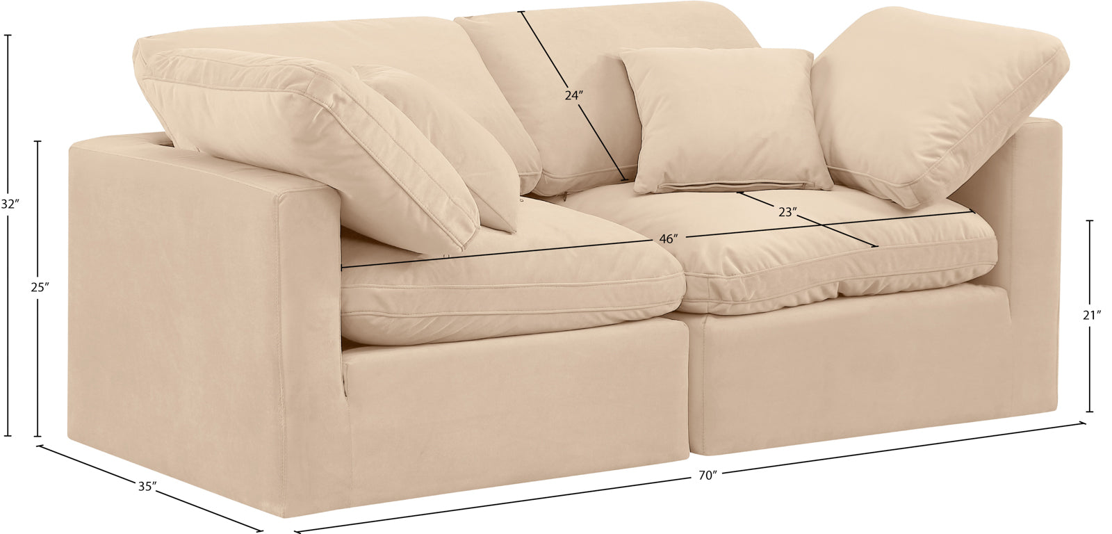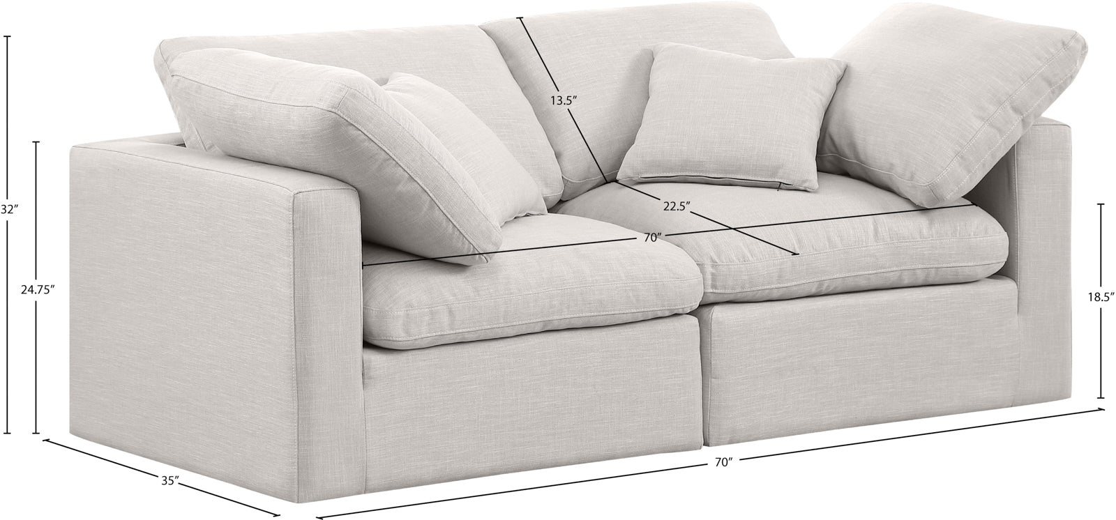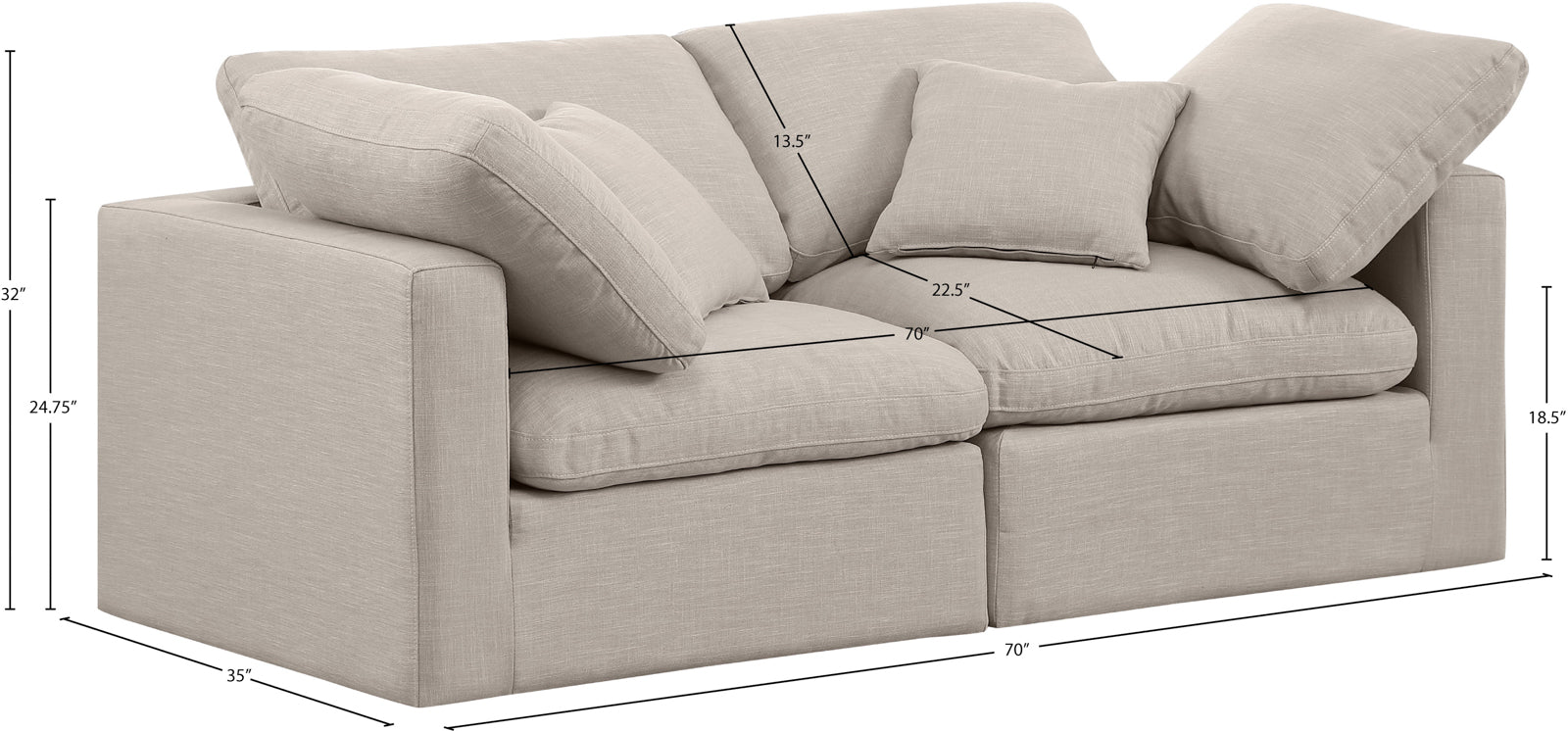 - Dimensions: 141Beige-S70 Indulge Beige Linen Textured Fabric Modular Sofa - 70" W x 35" D x 32" H