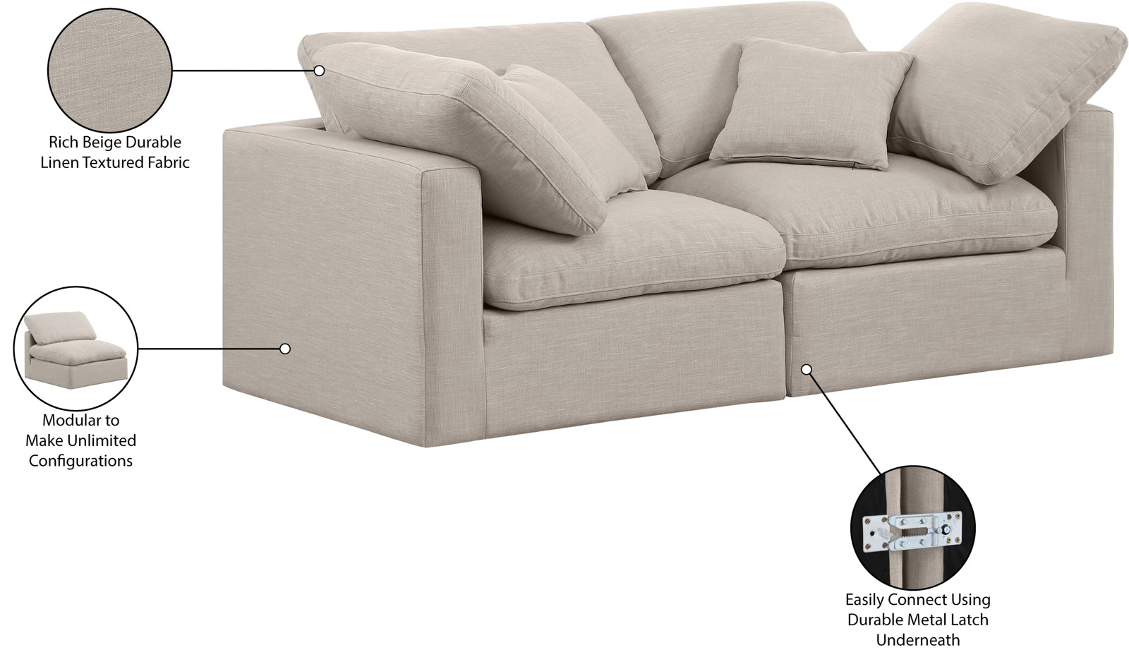 - Color: 141Beige-S70 Indulge Beige Linen Textured Fabric Modular Sofa - Beige Linen Textured Fabric