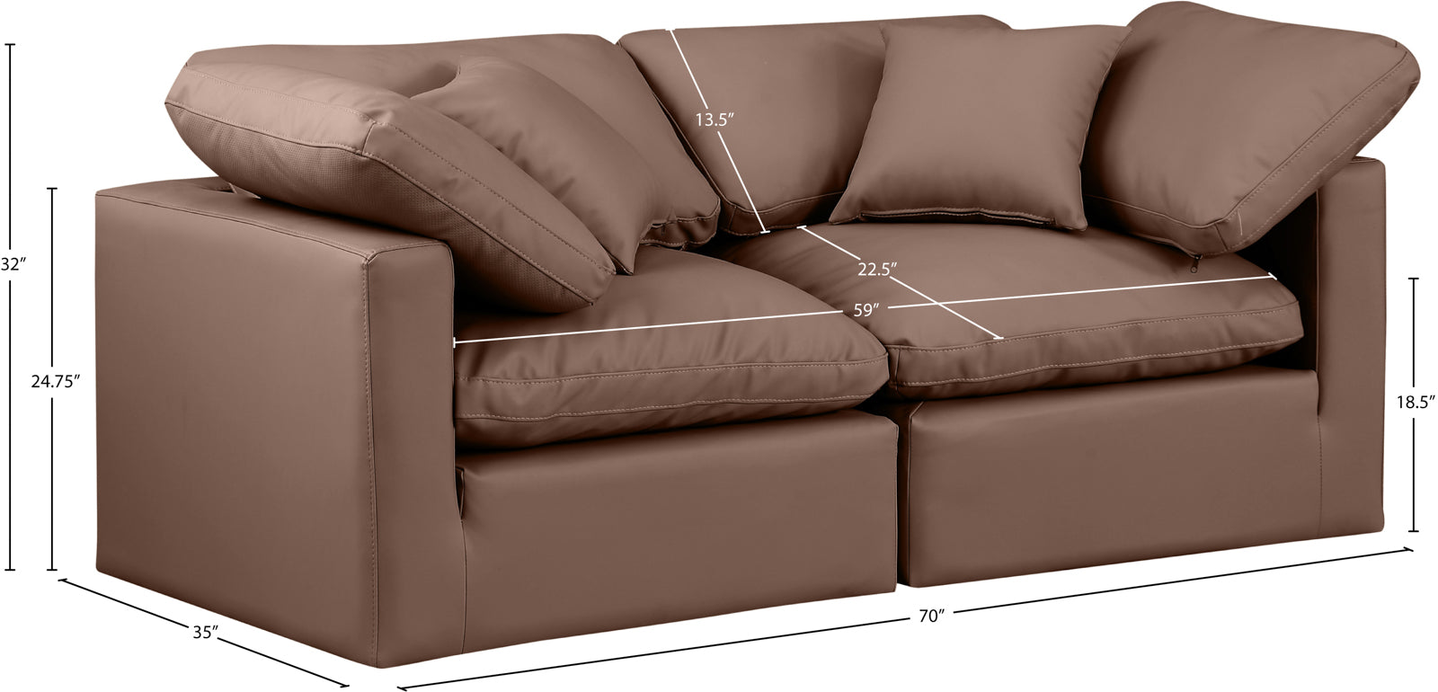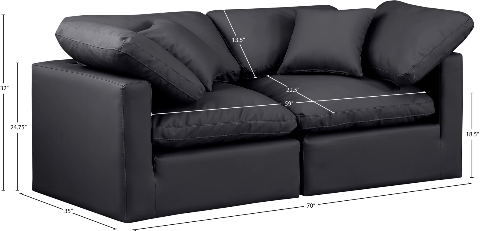 - Overall Height 35" When Back Cushion Fully Upright, 24.75" Without Seat Back Cushion
