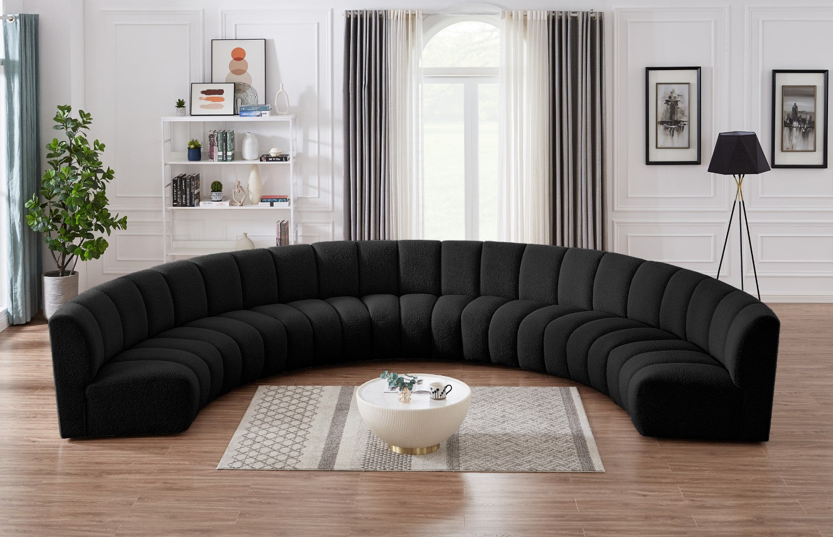 - Feature 1: Soft Black Boucle Fabric