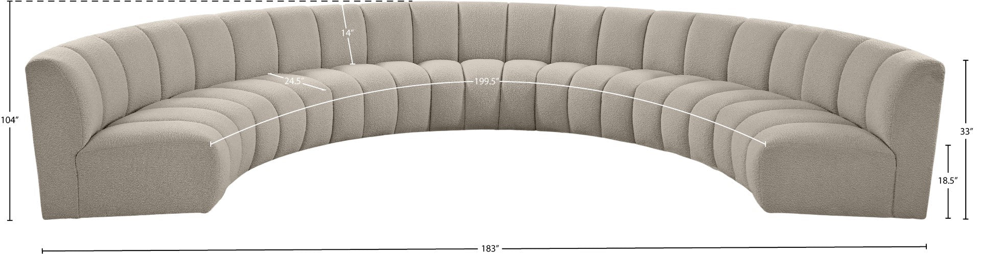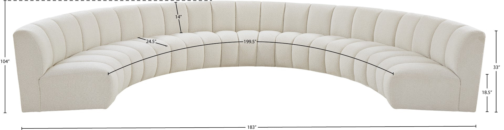 - Dimensions: 183" W x 104" D x 33" H
