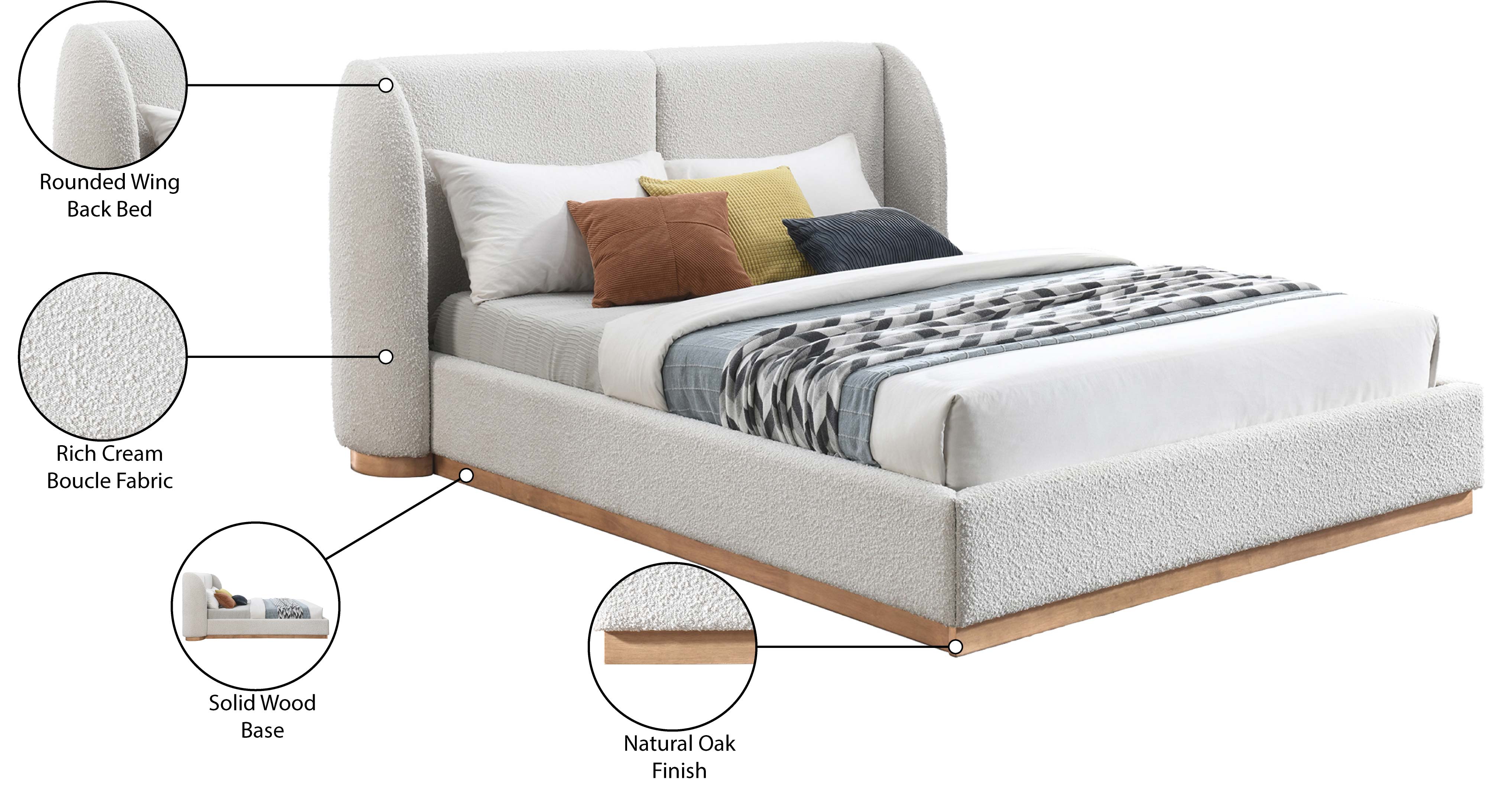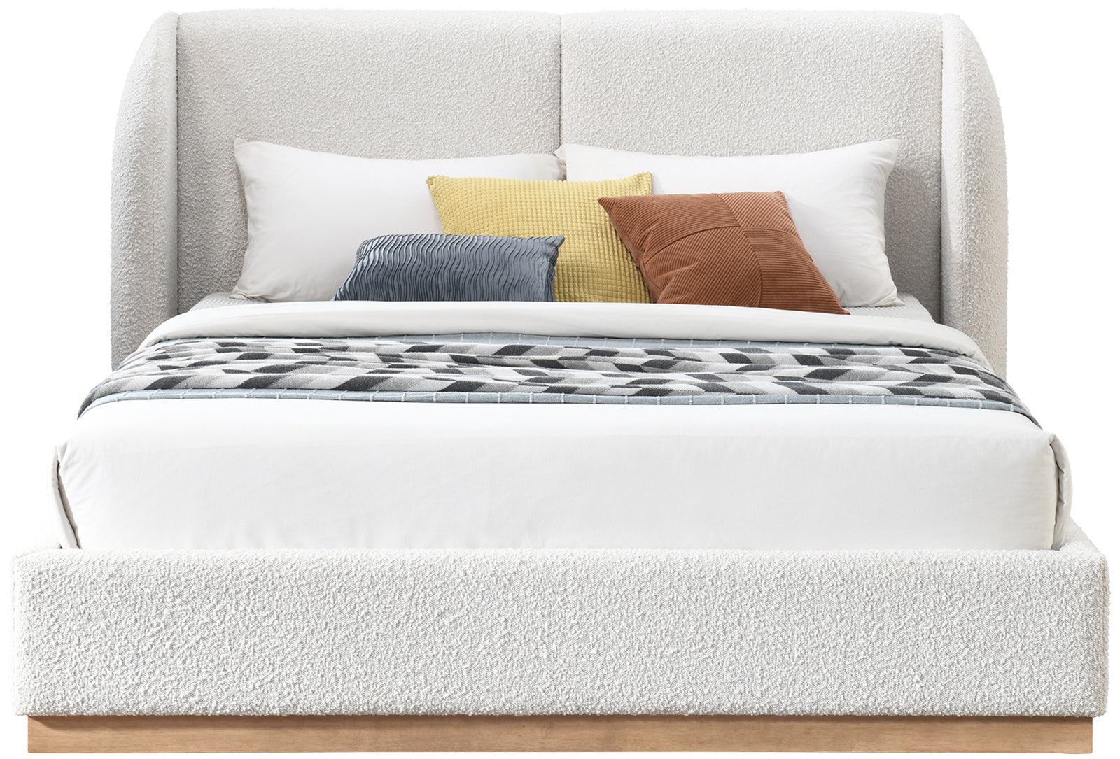 - Material: JardinCream-F Jardin Cream Boucle Fabric Full Bed - Boucle Fabric / Engineered Wood / Rubberwood / Foam with Natural Oak