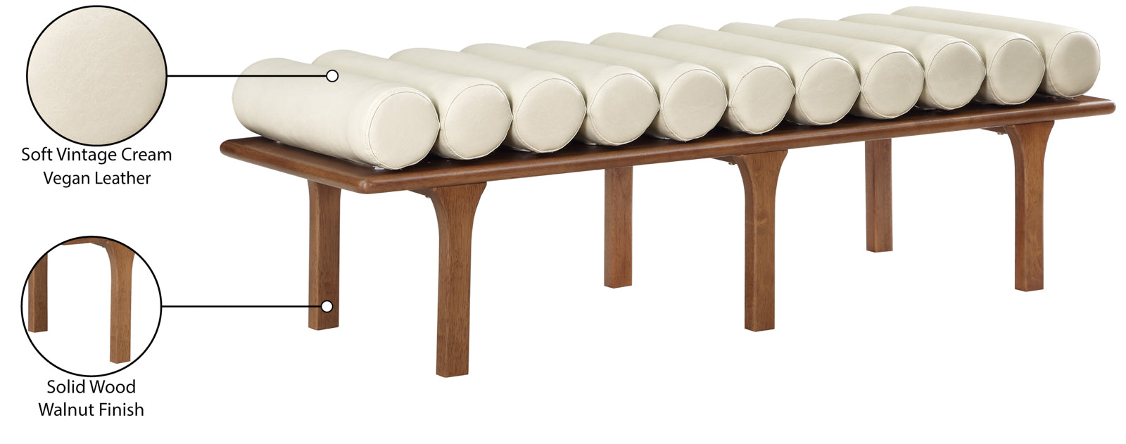 - Material: 22009Cream Landon Cream Vegan Leather Bench - Vegan Leather / Rubberwood / Foam with Walnut
