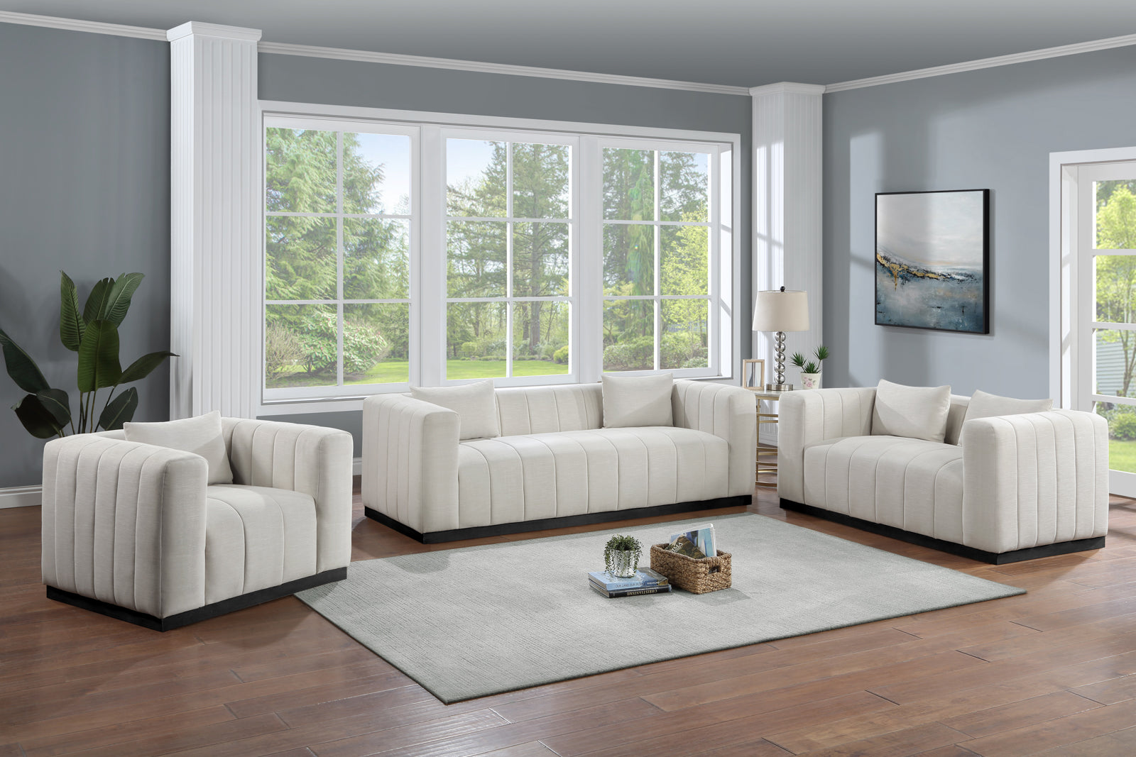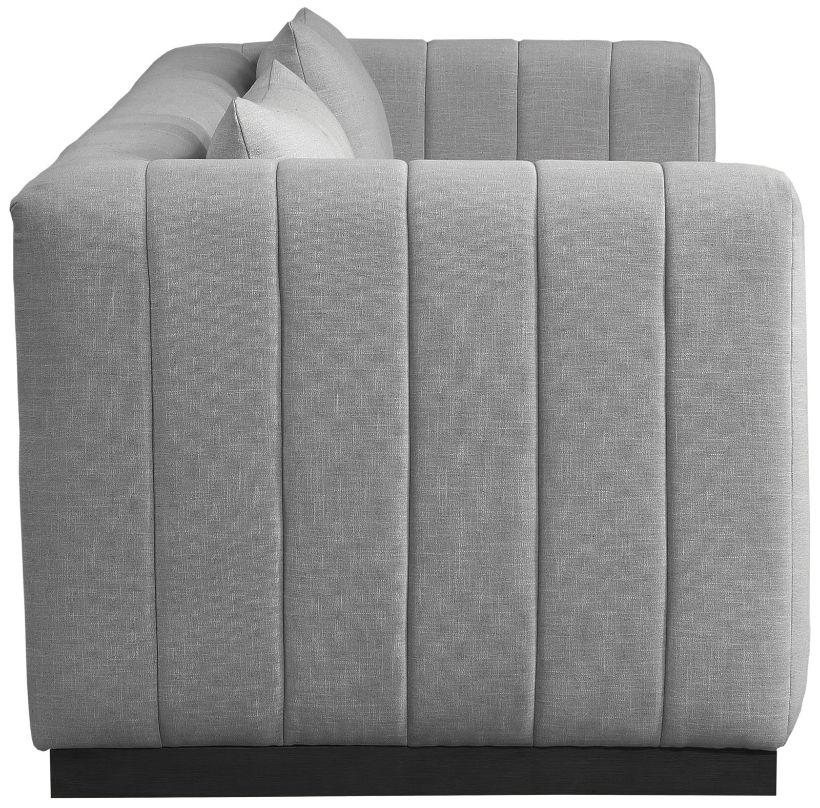 - Material: 655Beige-S Lucia Beige Linen Textured Fabric Sofa - Linen Textured Fabric / Rubberwood / Plywood with Black