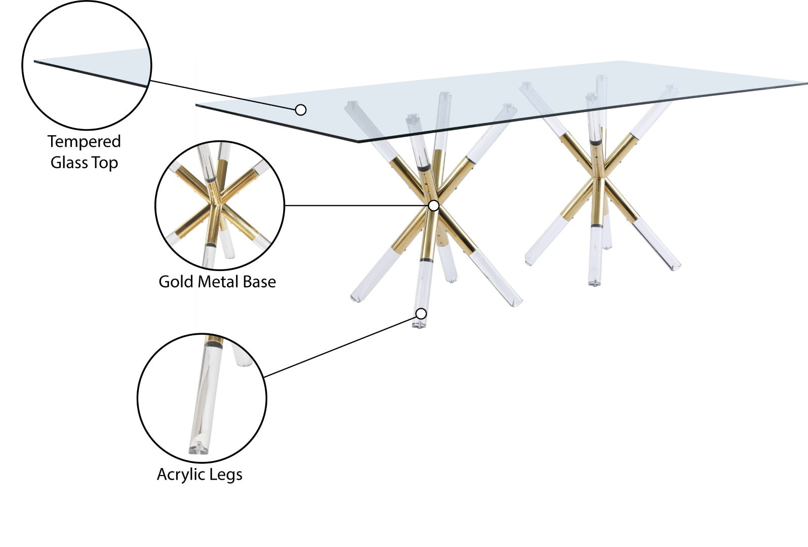 - Feature 1: Acrylic & Gold Metal Base Round Dining Table