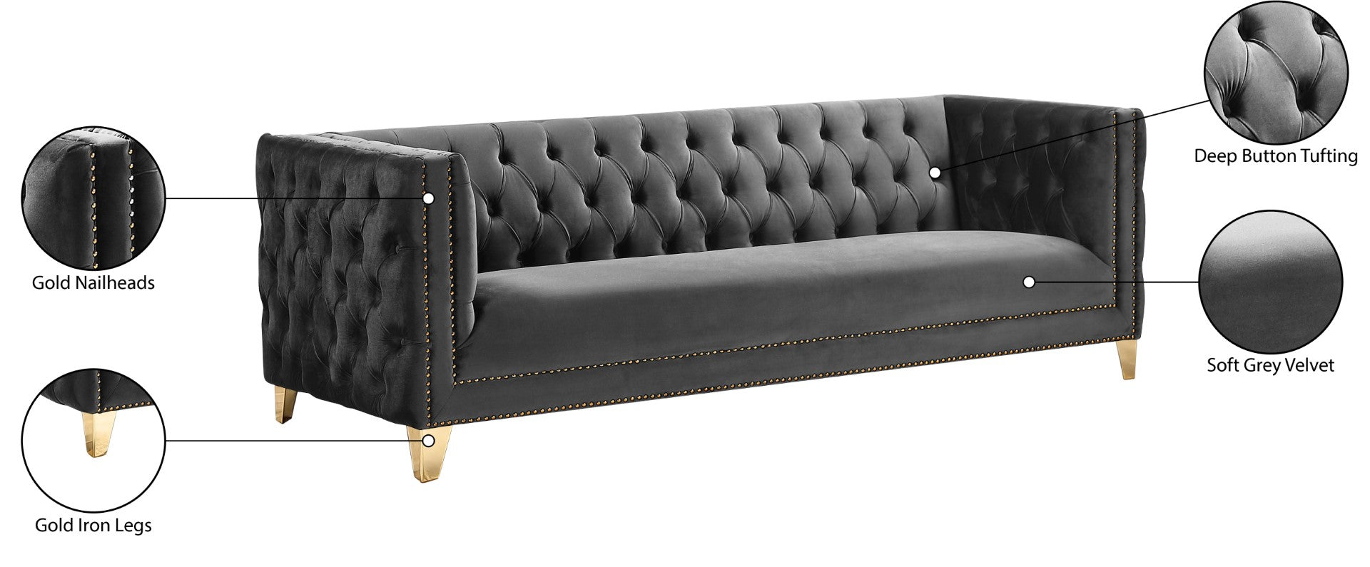 - Material: Velvet / Engineered Wood / Iron / Foam