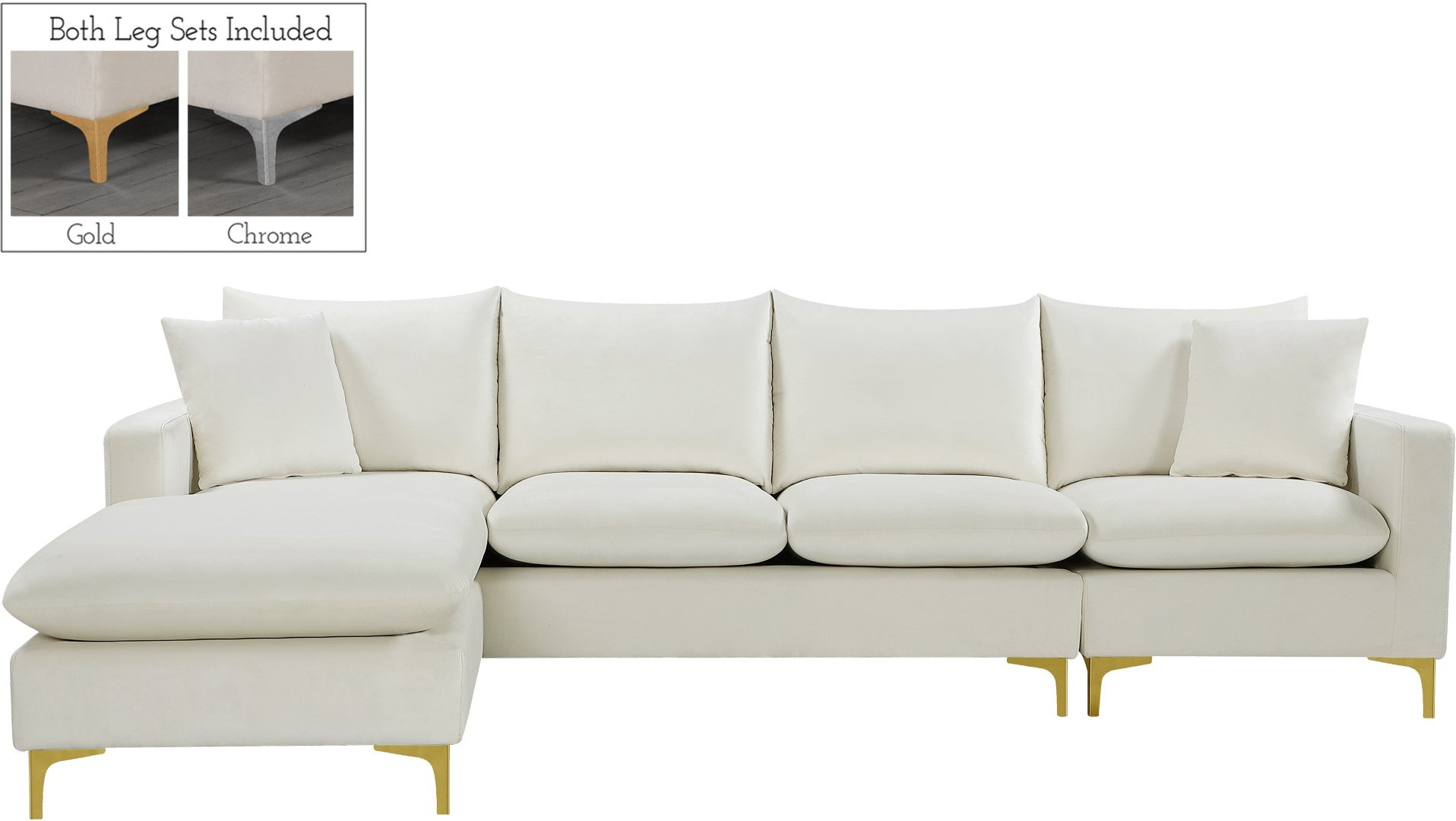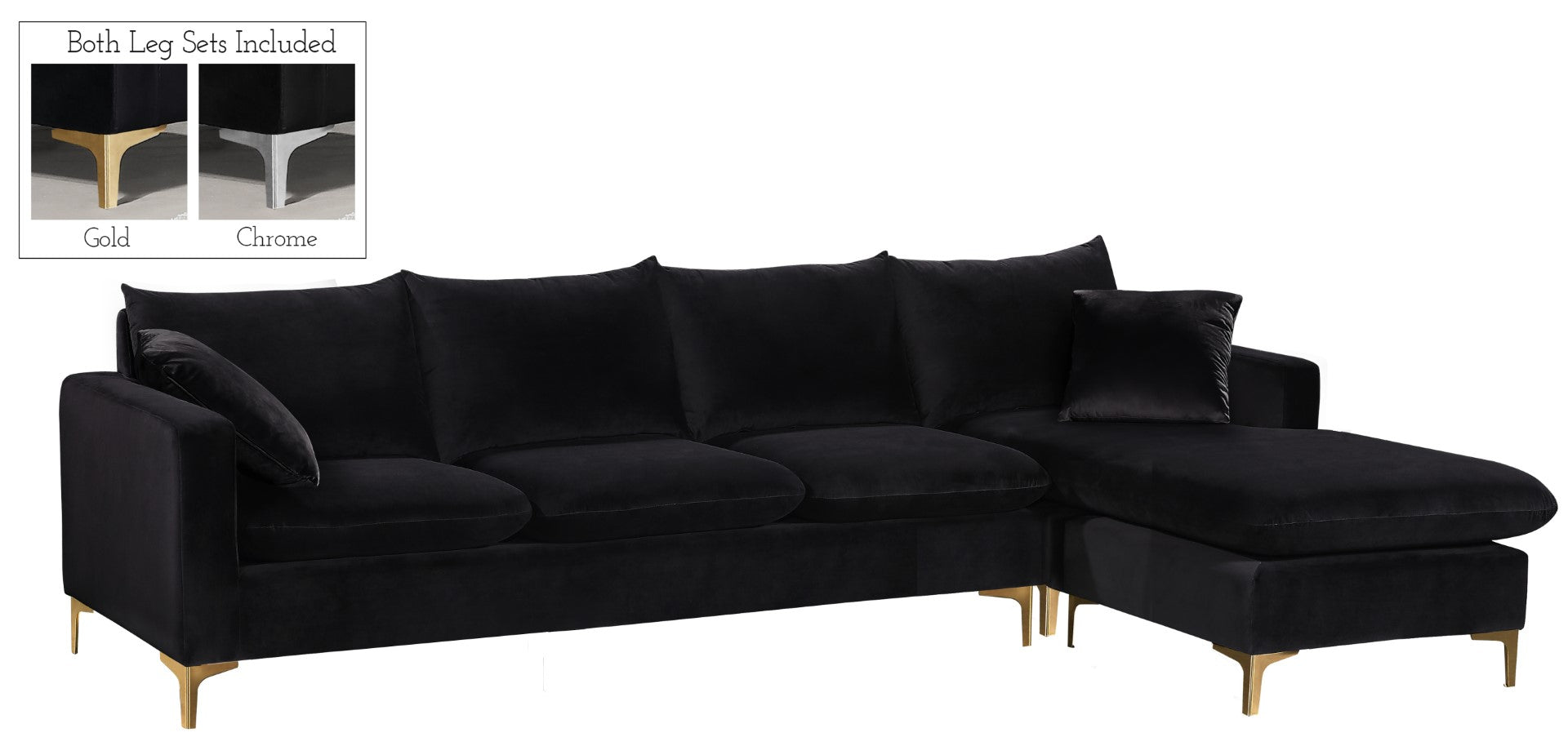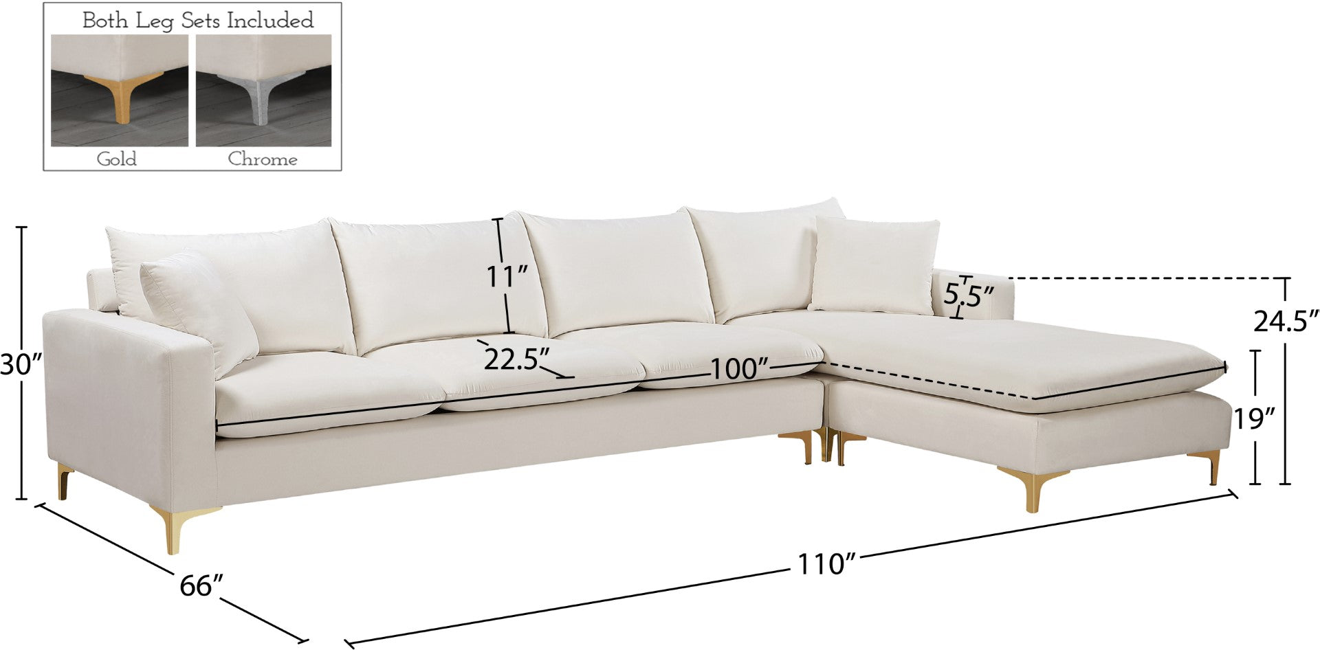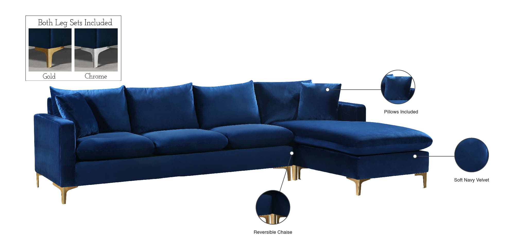 - Feature 1: Complete Sets of Gold & Chrome Legs Included to suit your decor