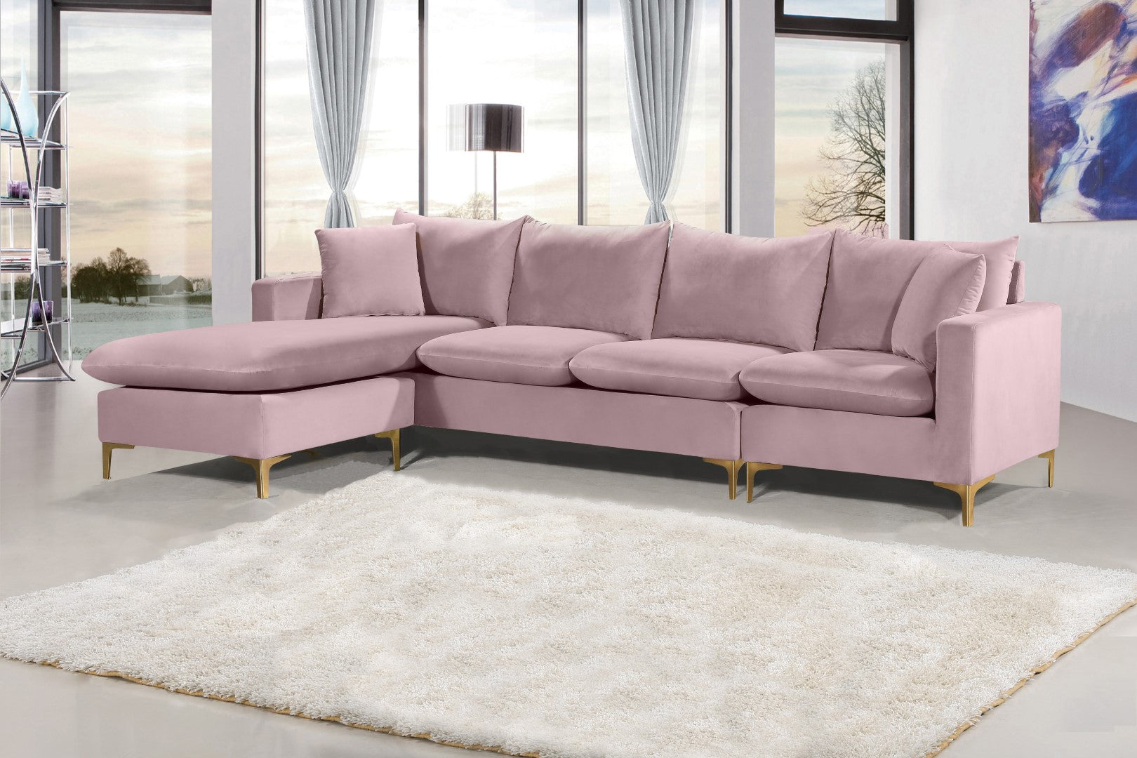 - Material: Velvet / Engineered Wood / Metal / Foam