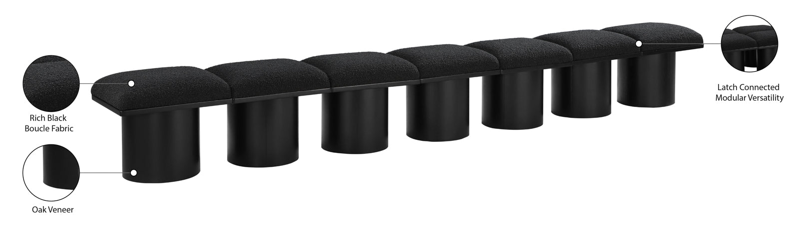 - Dimensions: 466Black-7A Pavilion Black Boucle Fabric Bench - 126" W x 15.5" D x 17.5" H