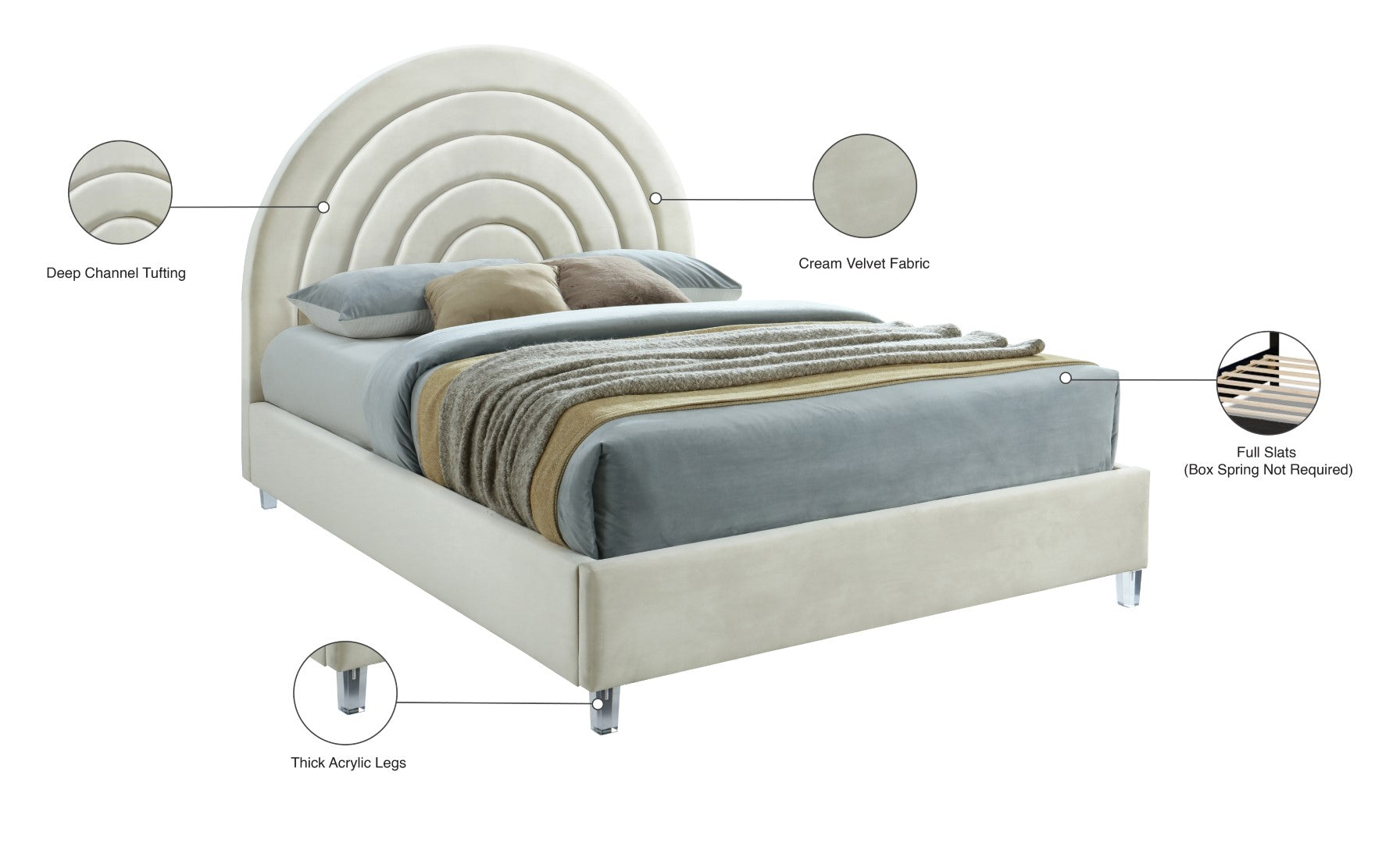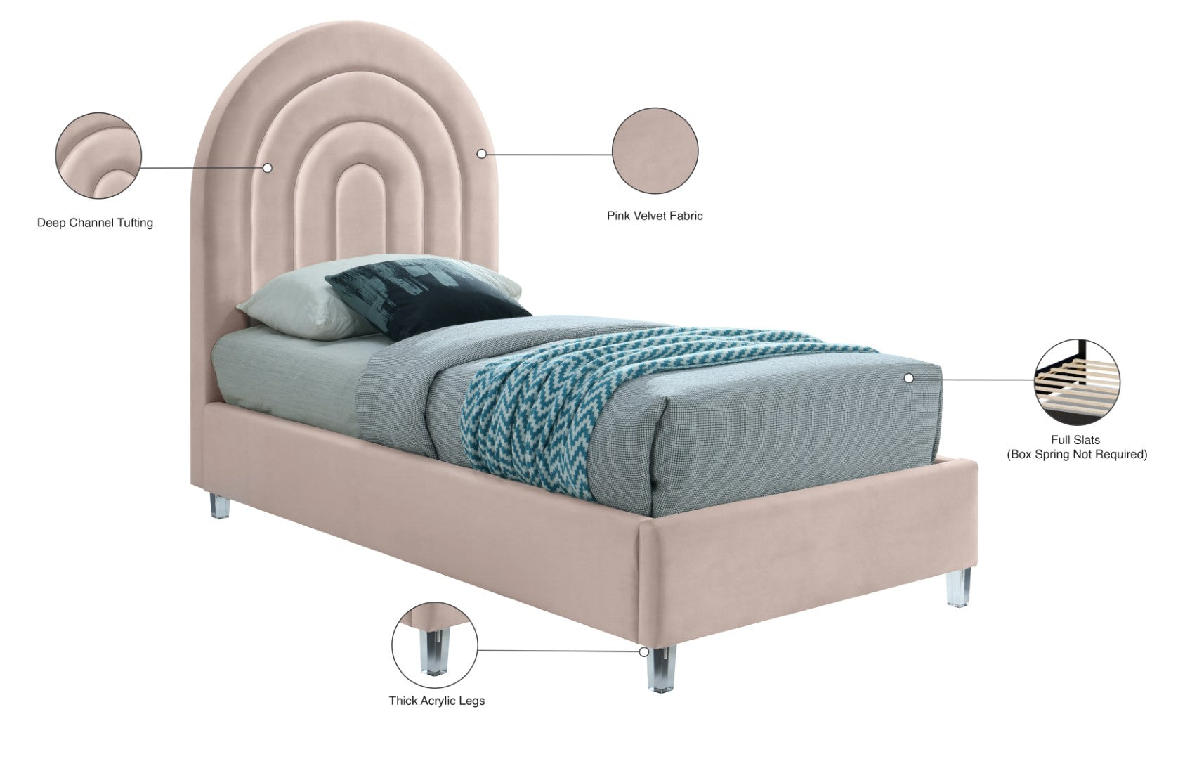 - Material: Acrylic / Velvet / Engineered Wood / Foam