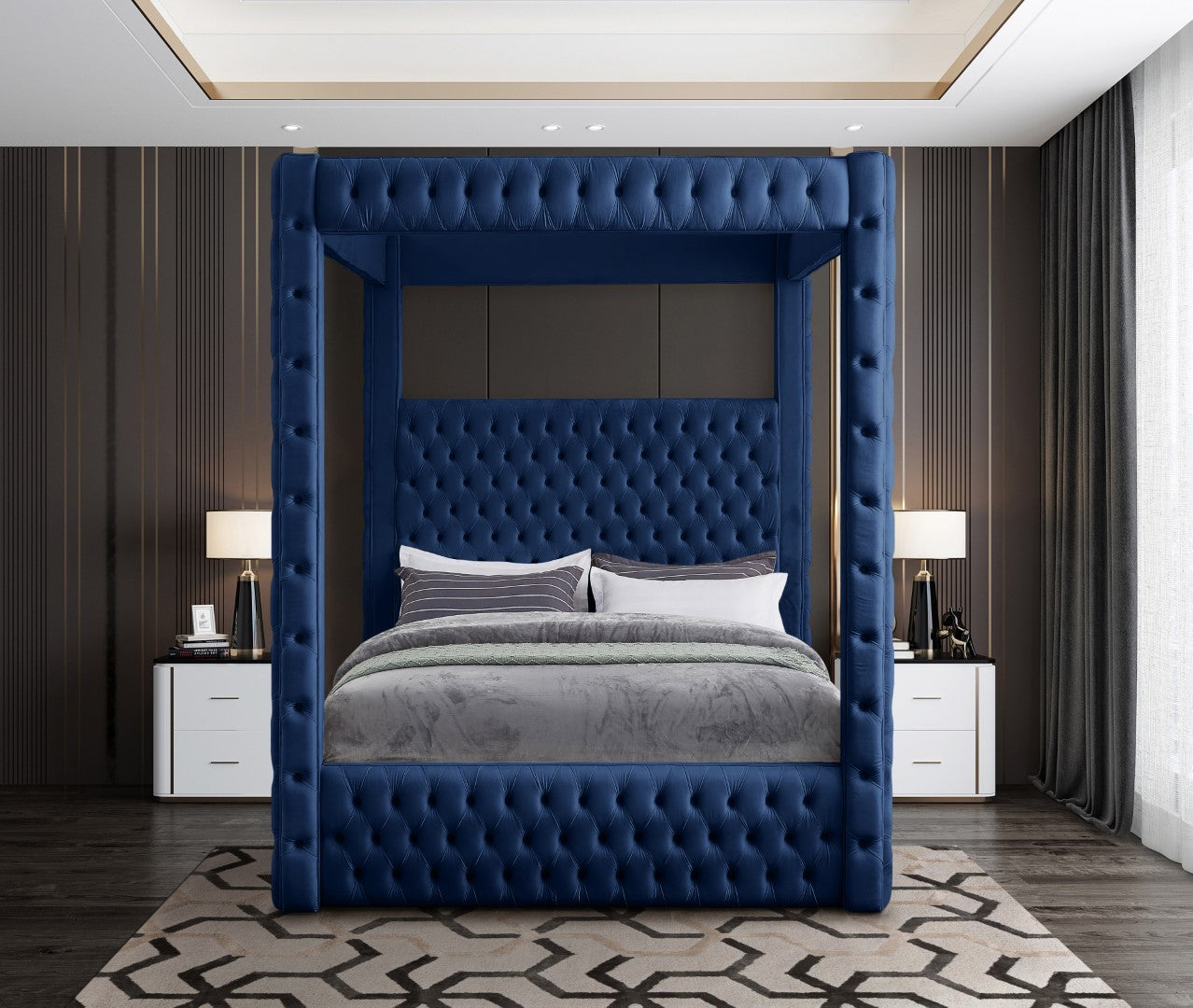 - Material: Velvet / Engineered Wood / Metal / Foam
