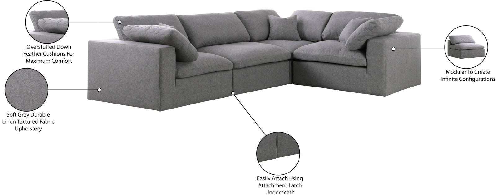 - Material: 601Black-Sec4C Serene Black Linen Textured Fabric Modular Sectional - Linen Textured Fabric / Down / Polyester / Engineered Wood
