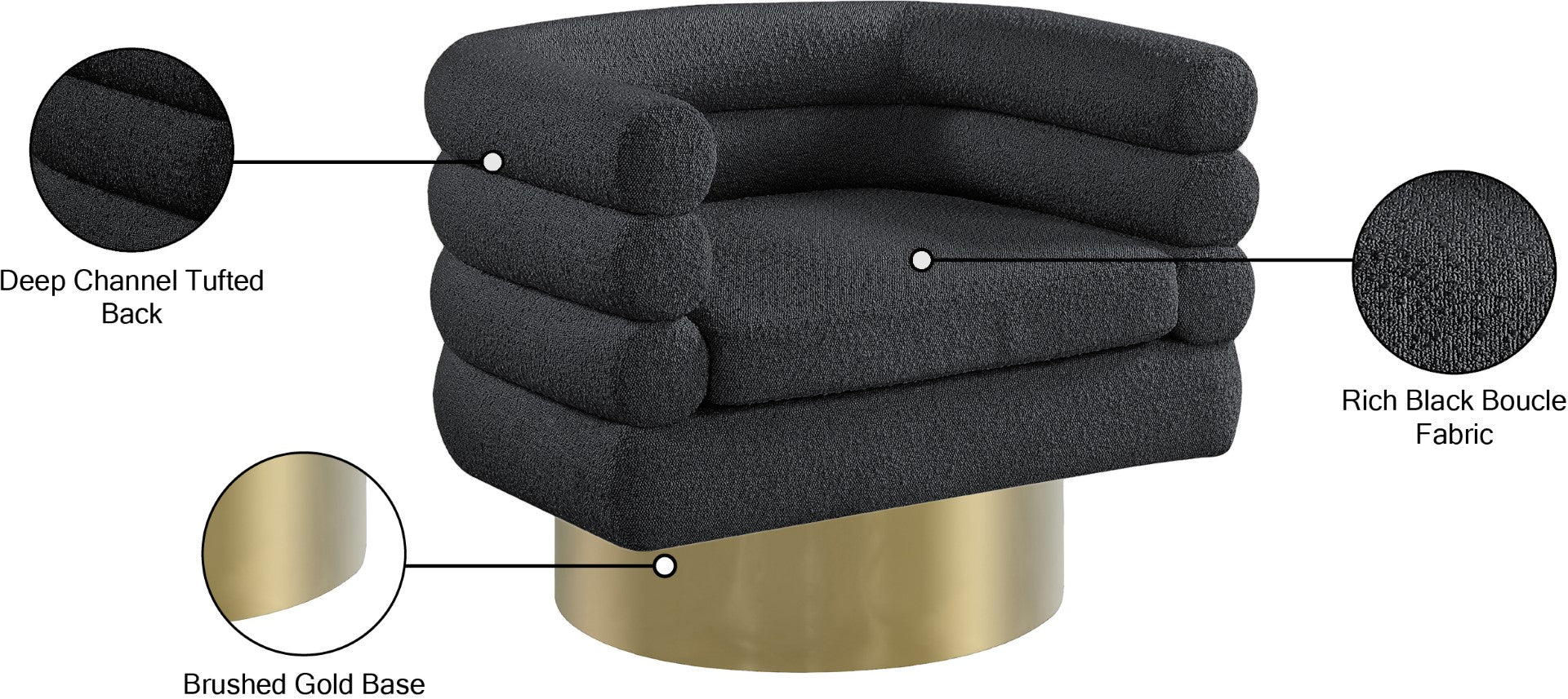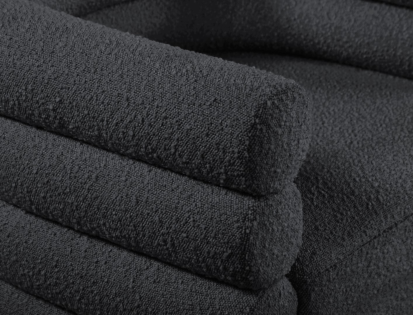 - Feature 1: Rich Black Boucle Fabric