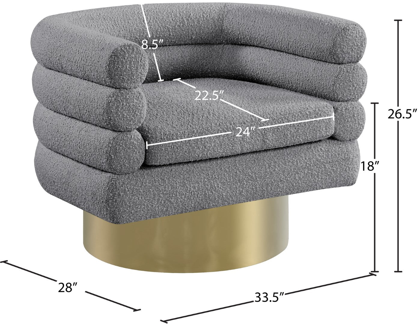 - Dimensions: 33.5" W x 28" D x 26.5" H