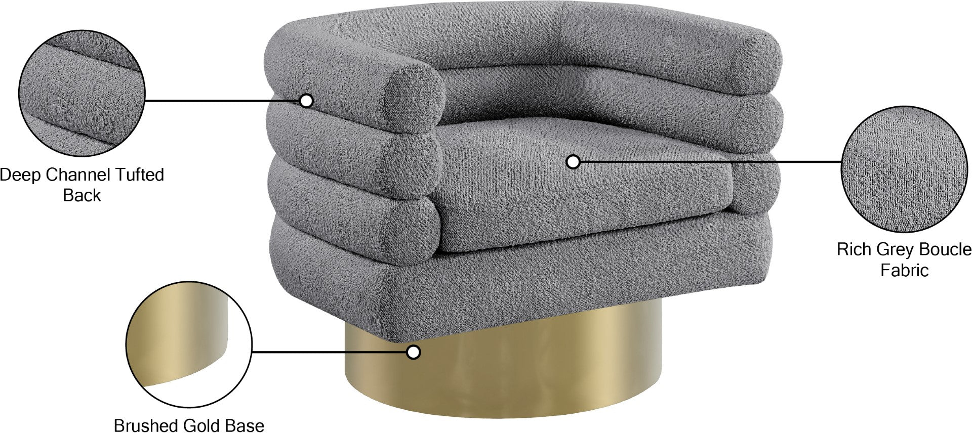 - Material: Boucle Fabric / Stainless Steel / Foam