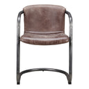 Add the Freeman Dining Chair to create some originality in your design. It has a modern industrial look with a rustic black top-grain leather and iron framing.Wipe leather furniture down regularly with a clean, dry microfiber cloth. For stubborn patches of dust, dampen the cloth with a small amount of water. Do not let water soak into the leather. We recommend vacuuming leather regularly using the upholstery attachment and crevice tool of your vacuum. If a spill occurs, immediately blot the fabric with a clean, absorbent towel. We do not recommend using any detergents, polishes, waxes, aerosol sprays, or harsh cleaning products not specifically designed for use on leather. Made in China Industrial.