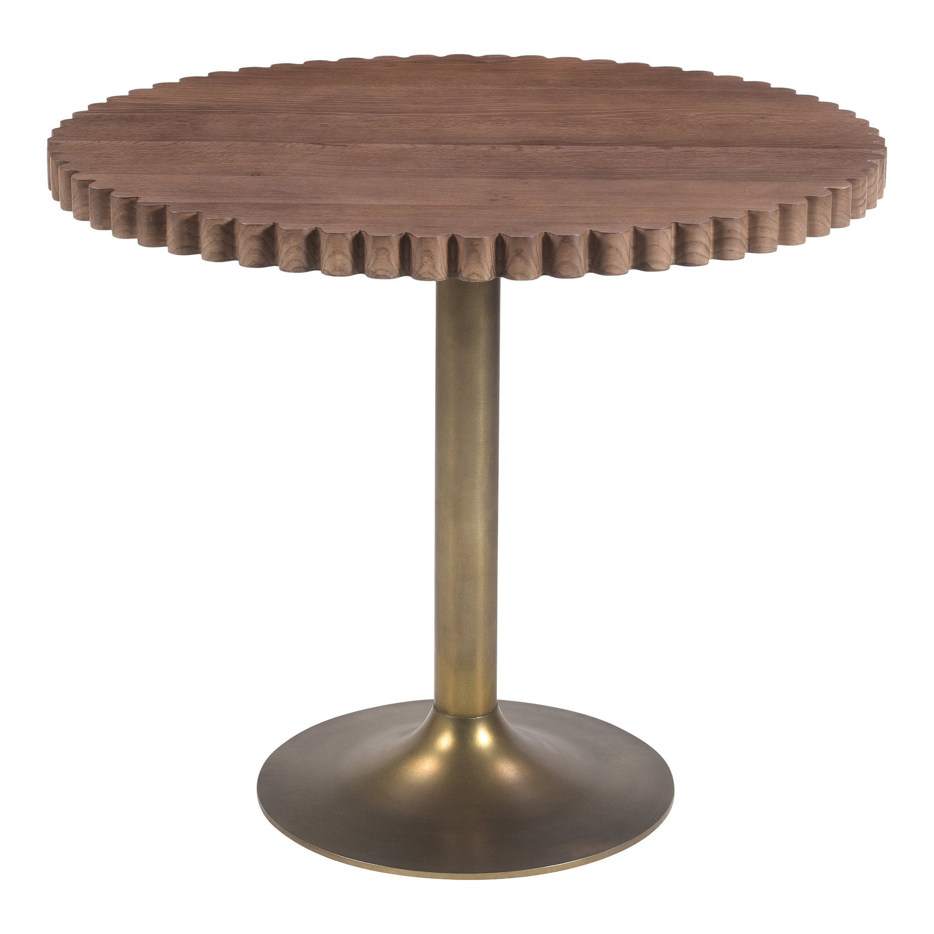 - Solid oak top with antiqued-brass iron base & cast iron base