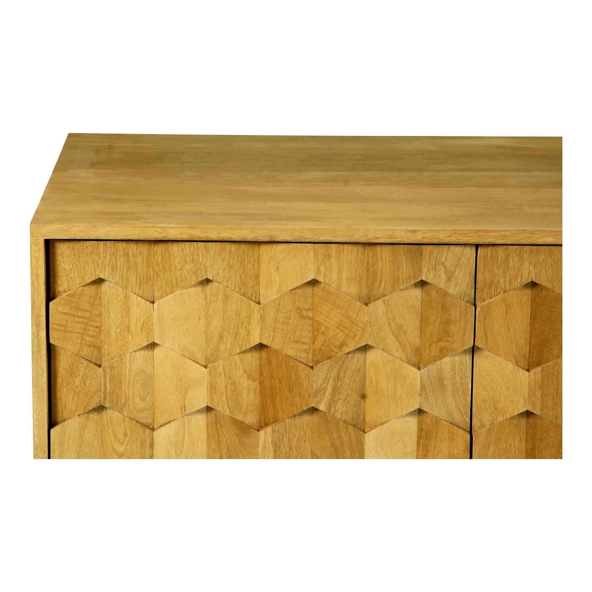 - FEATURES AND BENEFITS 1: 2 unique hexagonal engraved cabinet doors