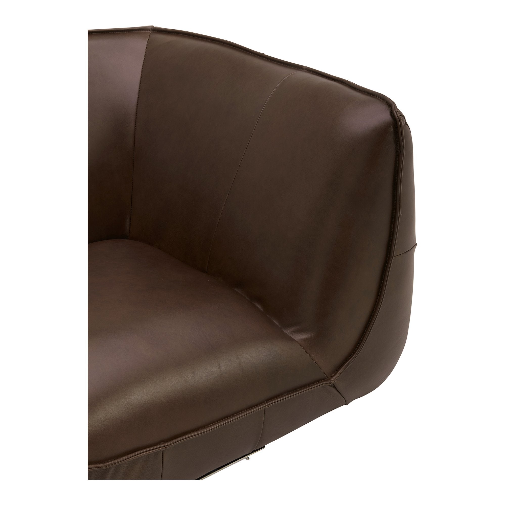 - 100% top-grain leather upholstery over an engineered hardwood frame with pine & yellow poplar sits atop a subtle base design with alligator clip base connectors
