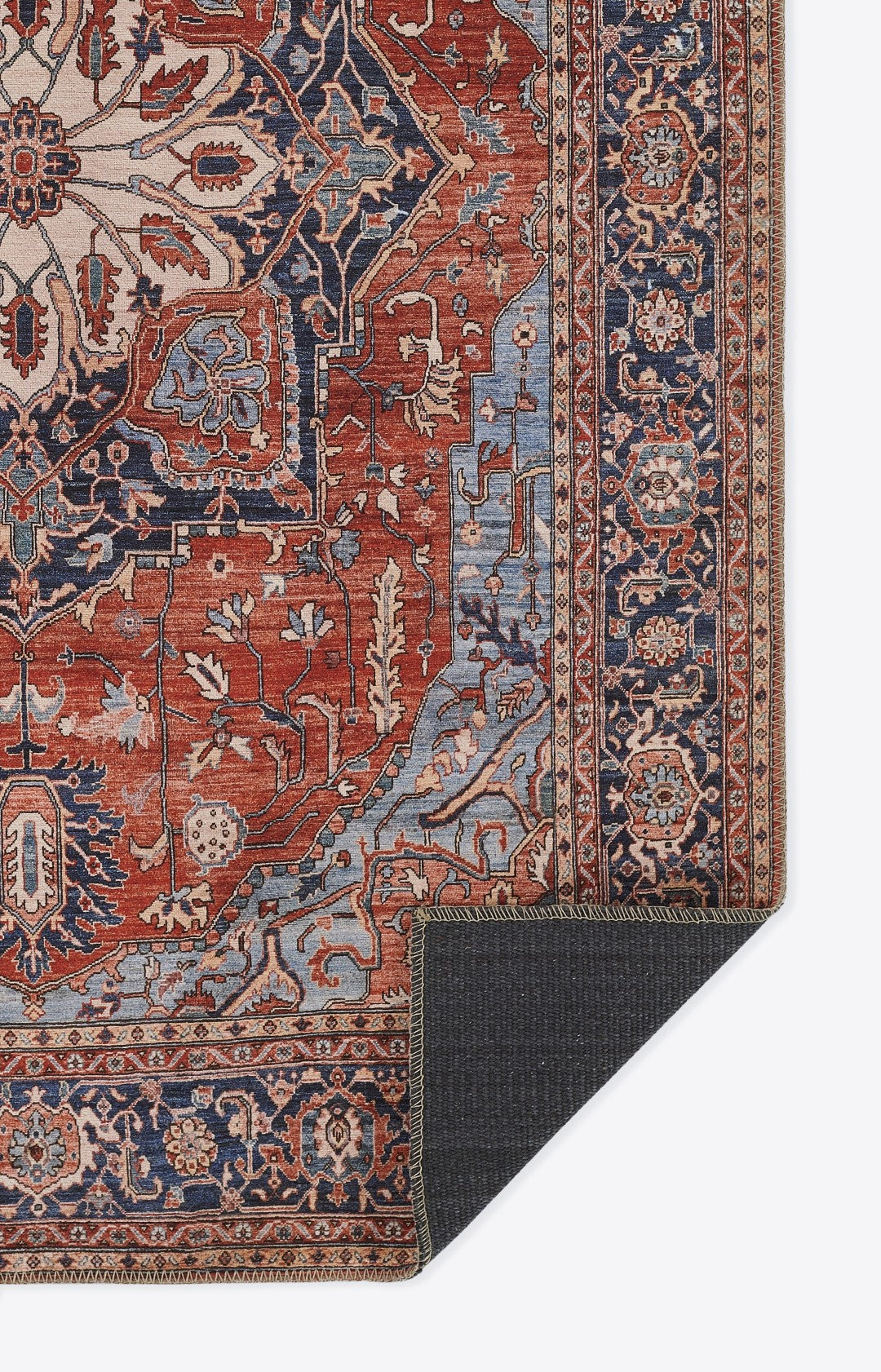 Afshar features old world charm and high end design that is awakened by over-dyed, rich colors. Masterful, sharp designs are complimented by hand stitched edges and a soft backing, for a refined and timeless look that is at home in a myriad of spaces.