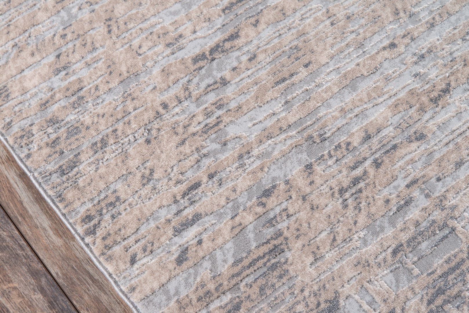 The understated elegance of this contemporary area rug collection is rich in industrial artistry. Each abstract rug design looks rugged and raw, using striations and shadows to develop depth and dimension throughout the textural field of the floorcoverings. A modern mix of polyester and polypropylene fibers softens the edgy style of each accent rug with subdued shades of grey and beige.