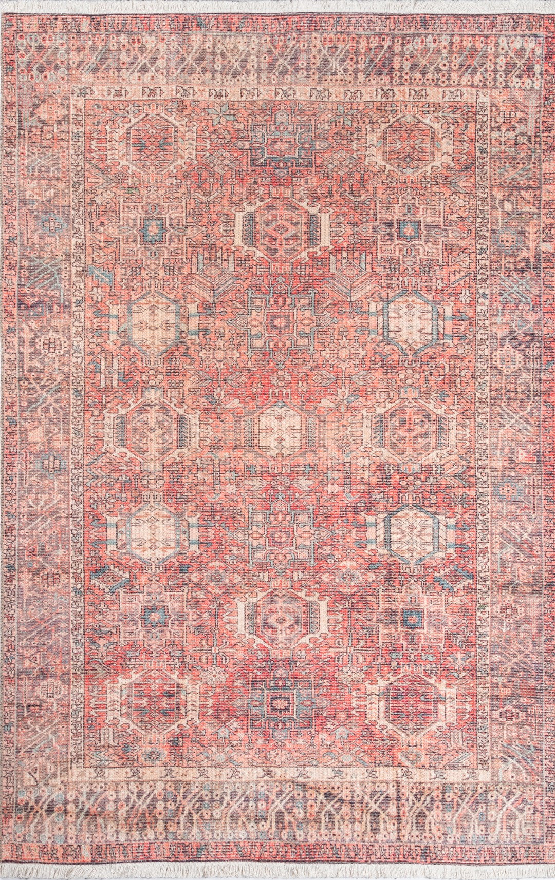 Rustic details throughout this traditional area rug collection put an Americana twist on an Old-World signature. Iconic medallion-and-border motifs are reimagined in a red, white and blue color palette that lends the classic Persian rug patterns a folklore-for-the-floor vibe. Crafted from resilient polyester fibers, striated accents across each decorative floorcovering imply well-worn texture that are an essential element of heritage style.
