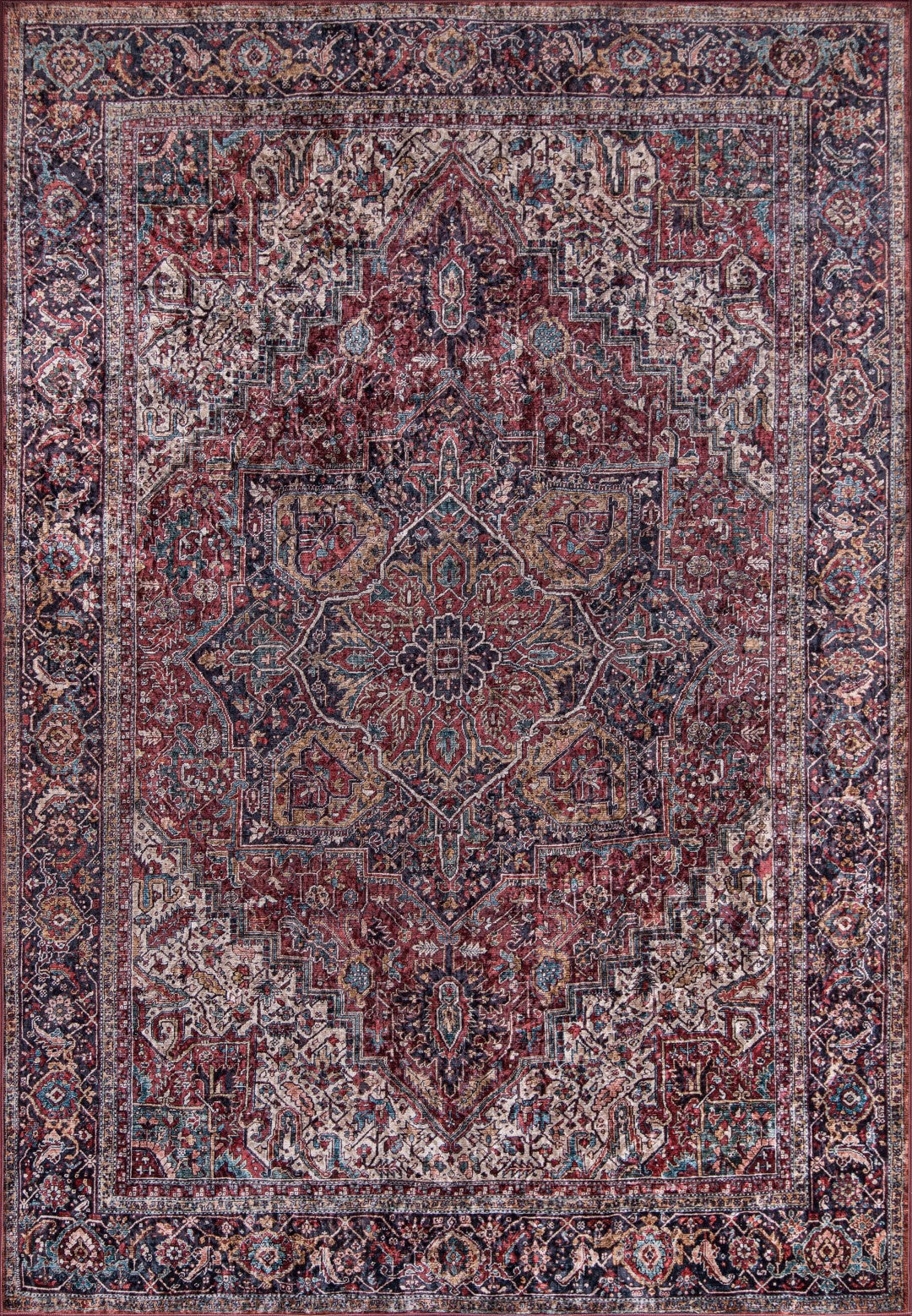 Available in an array of ancient patterns, this traditional area rug collection adds timeless integrity to interior floors. Regal shades of red, blue, ivory and gold are an invitation to explore the exquisite tracery, flower and central medallion shapes essential to Serapi and Tabriz carpets. Resilient polyester threads preserve the heritage of Persian designs for decades to come with an innovative fiber that’s luxe and long lasting.