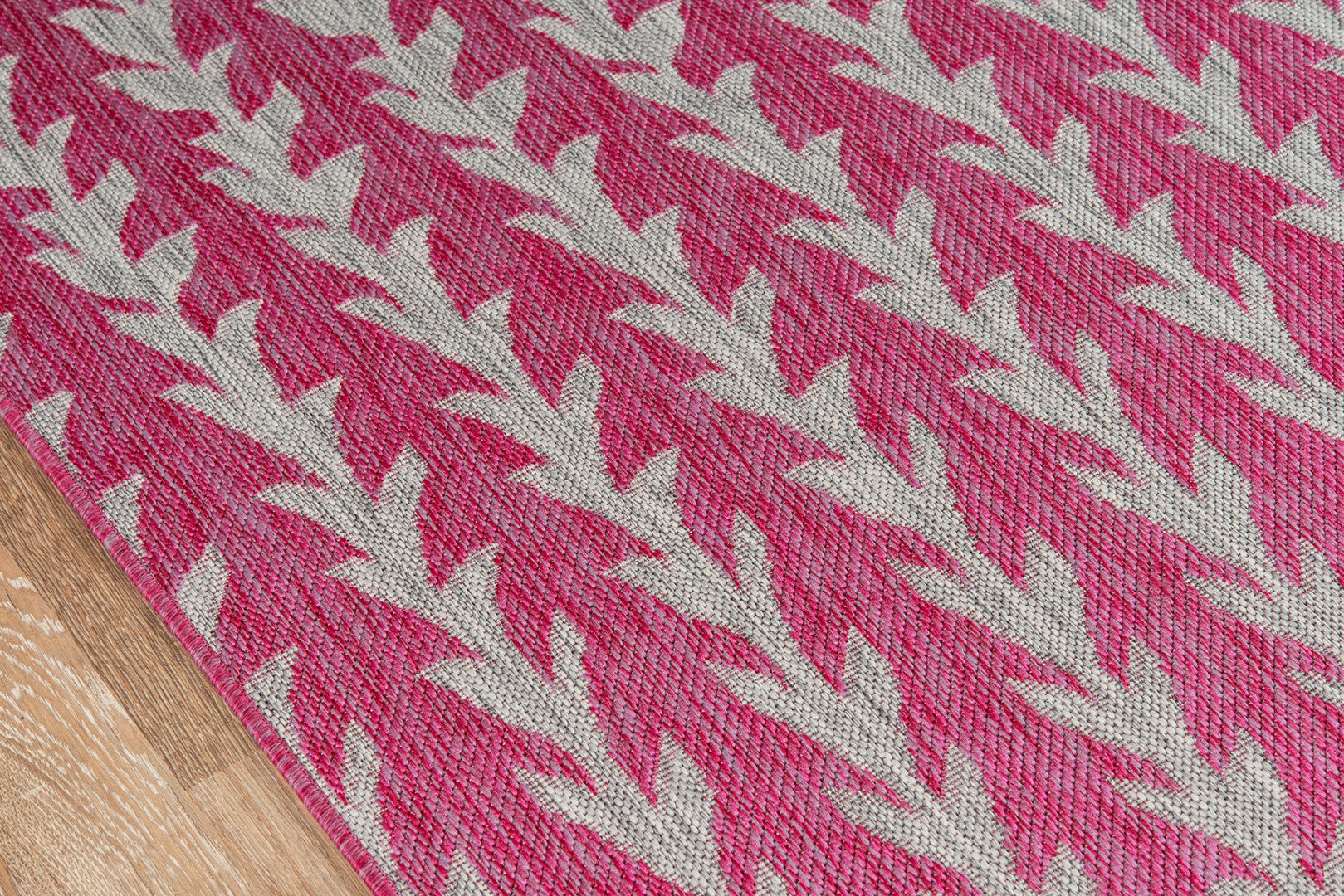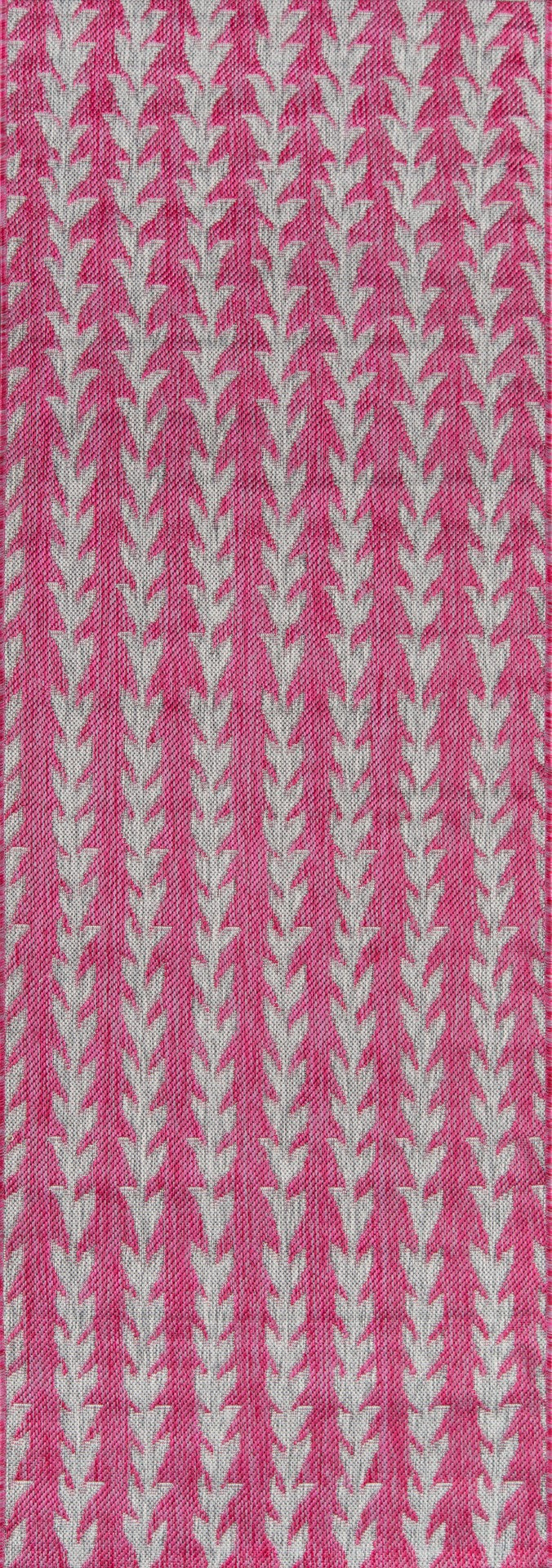 An indoor/outdoor rug assortment that exudes contemporary cool, this modern area rug collection features repetitive patterns inspired by international architectural motifs. The all-weather rug series emphasizes graphic geometric prints, using high contrast charcoal grey, chambray blue, fuchsia pink and russet red shades to draw attention toward the floor. Manufactured from durable polypropylene fibers, the decorative floorcovering series is a staple for statement-making interior and exterior spaces.