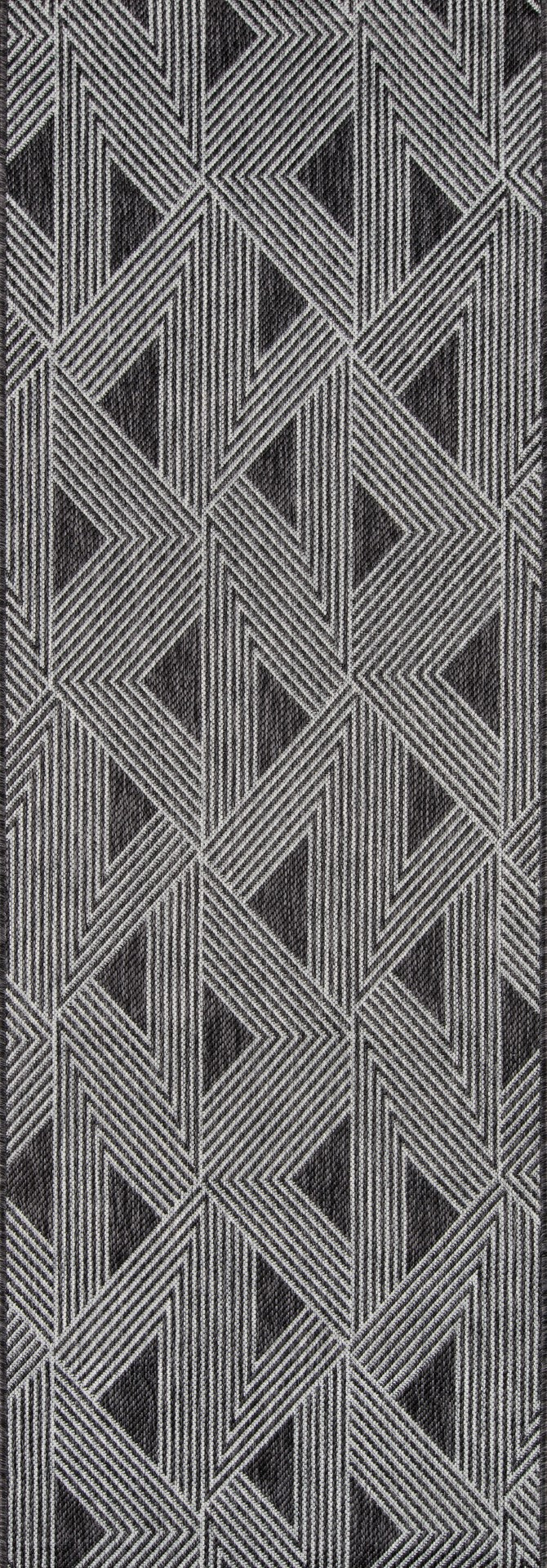 An indoor/outdoor rug assortment that exudes contemporary cool, this modern area rug collection features repetitive patterns inspired by international architectural motifs. The all-weather rug series emphasizes graphic geometric prints, using high contrast charcoal grey, chambray blue, fuchsia pink and russet red shades to draw attention toward the floor. Manufactured from durable polypropylene fibers, the decorative floorcovering series is a staple for statement-making interior and exterior spaces.