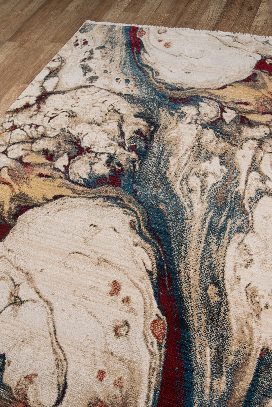 The painterly style of this modern area rug collection derives design inspiration directly from the artist’s palette. Each contemporary rug is every bit the non-traditional accent piece with uninhibited movement and abstract patterning inspired by the organic flow of paint on canvas. Polypropylene fibers feature beautifully saturated shades of brilliant red, blue and beige that bring interior floors a primary spectrum of swirling and striated pigment.
