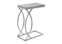- C-shaped accent table with a metal base that can be slid under a sofa or bed to keep items close by when you are seated