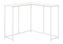 - Console table with a unique L-shaped design intended for placement in the corner of a living room
