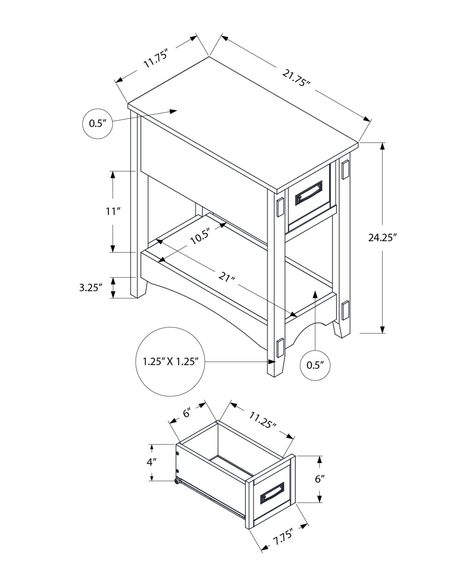 - A practical and fashionable 2 tier, 24 inch high accent table with a warm walnut brown veneer finish, versatile as an end table, side table, or as a nightstand in a bedroom for a stylish touch.
