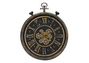 - This industrial, vintage inspired 24" round pocket watch style wall clock with a unique gear mechanism design, instantly upgrades a transitional home decor with a touch of nostalgia.