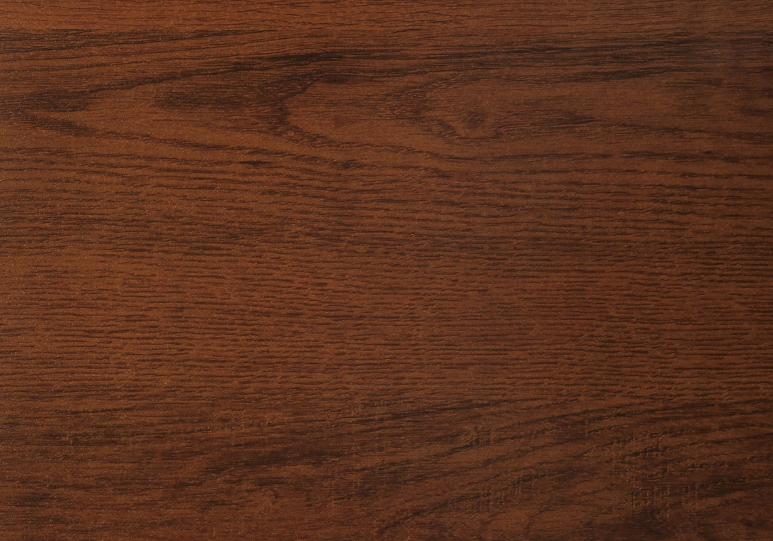 - Finished on all sides in a sleek reclaimed wood-look brown laminate, with a durably designed supporting black metal base in a modern u shape for stability with a fashionable style.