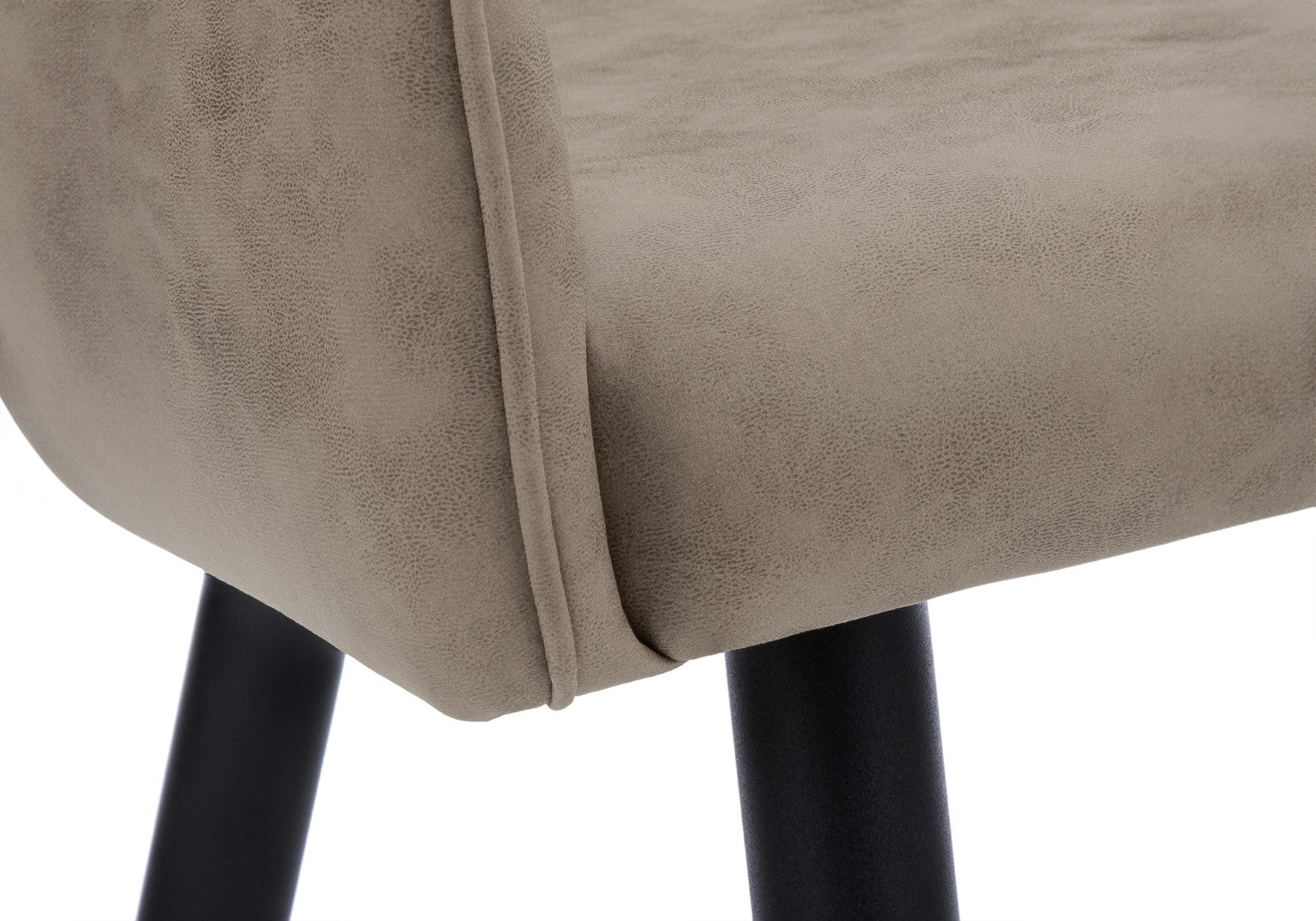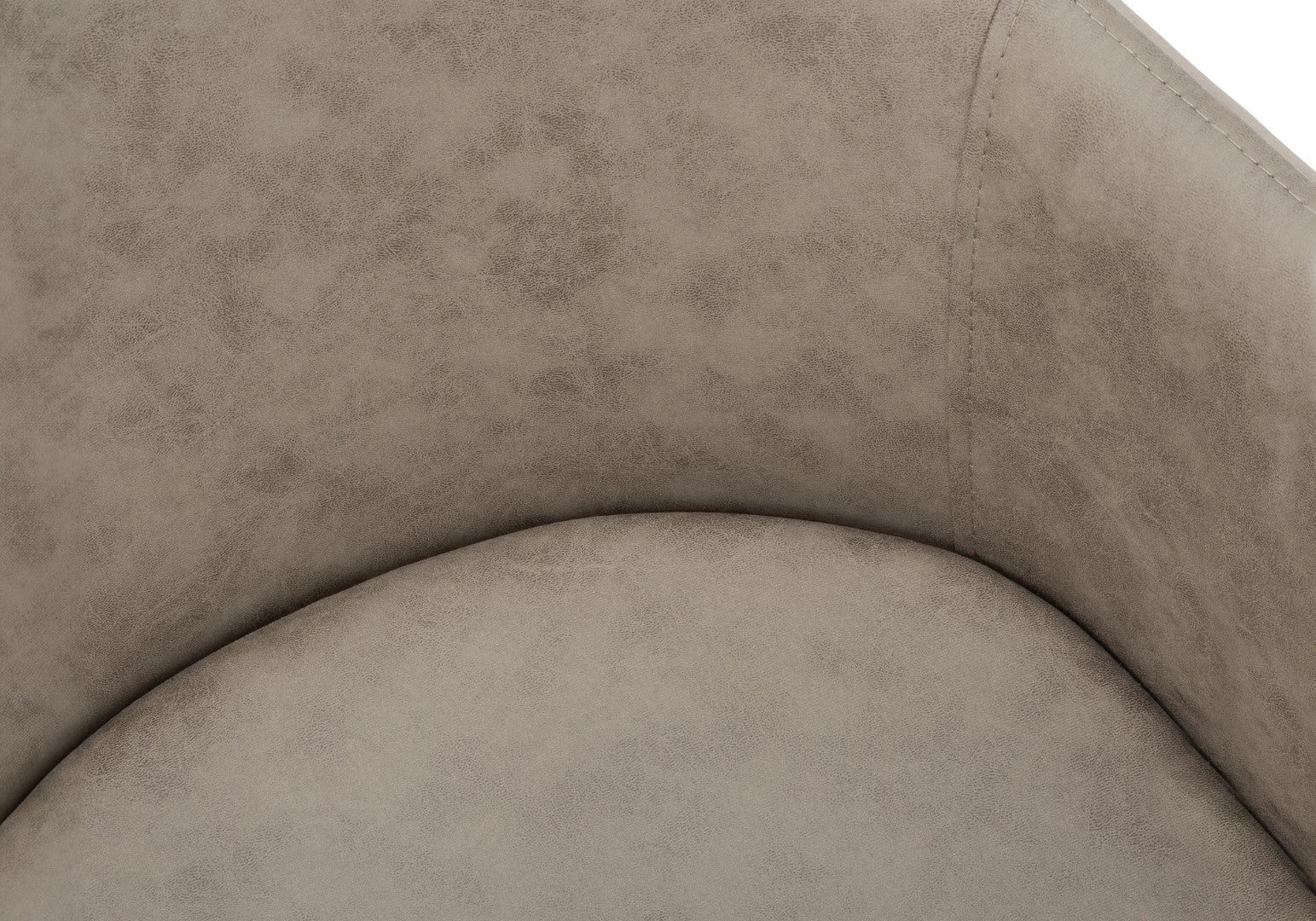 - Upholstered in a taupe distressed leather-look fabric with vertical channel tufting for a soft feel
