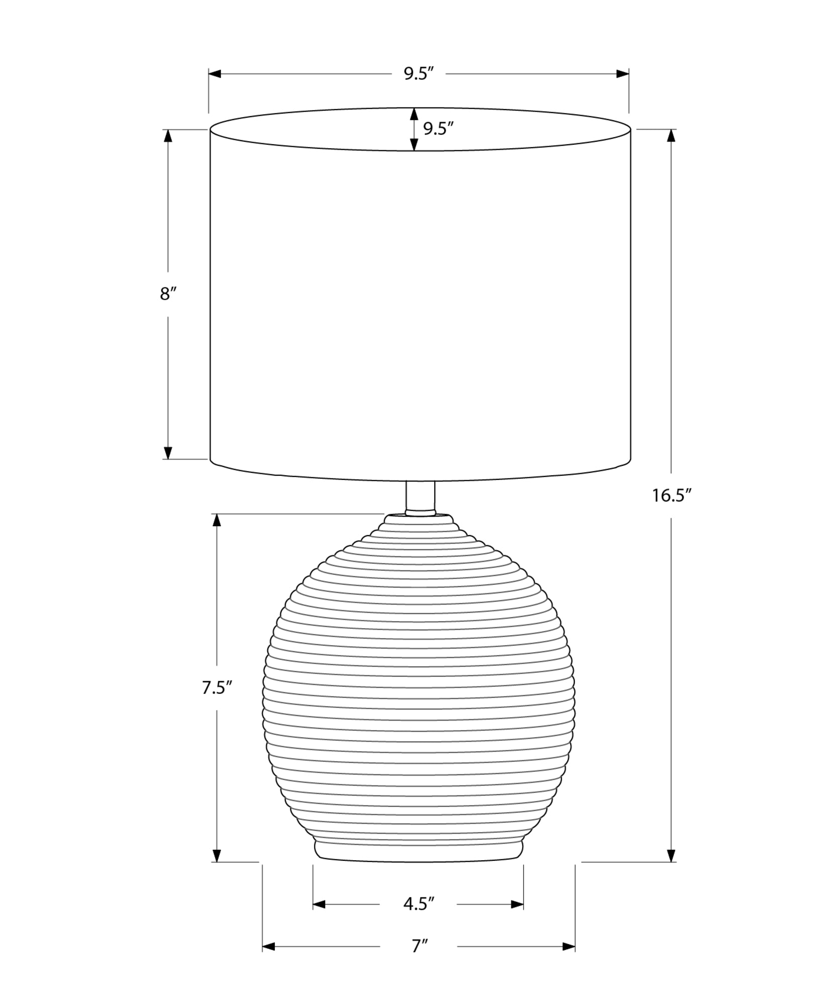 - Contemporary 16"h table lamp with a stylish beehive design textured finish base in trendy black resin, and a simple drum style ivory fabric shade to brighten a living room, bedroom, or office space.