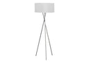 - This contemporary 62"h high floor lamp with a sleek nickel metal tripod design and grey fabric shade adds a touch of modern elegance in a living room, bedroom, or office.