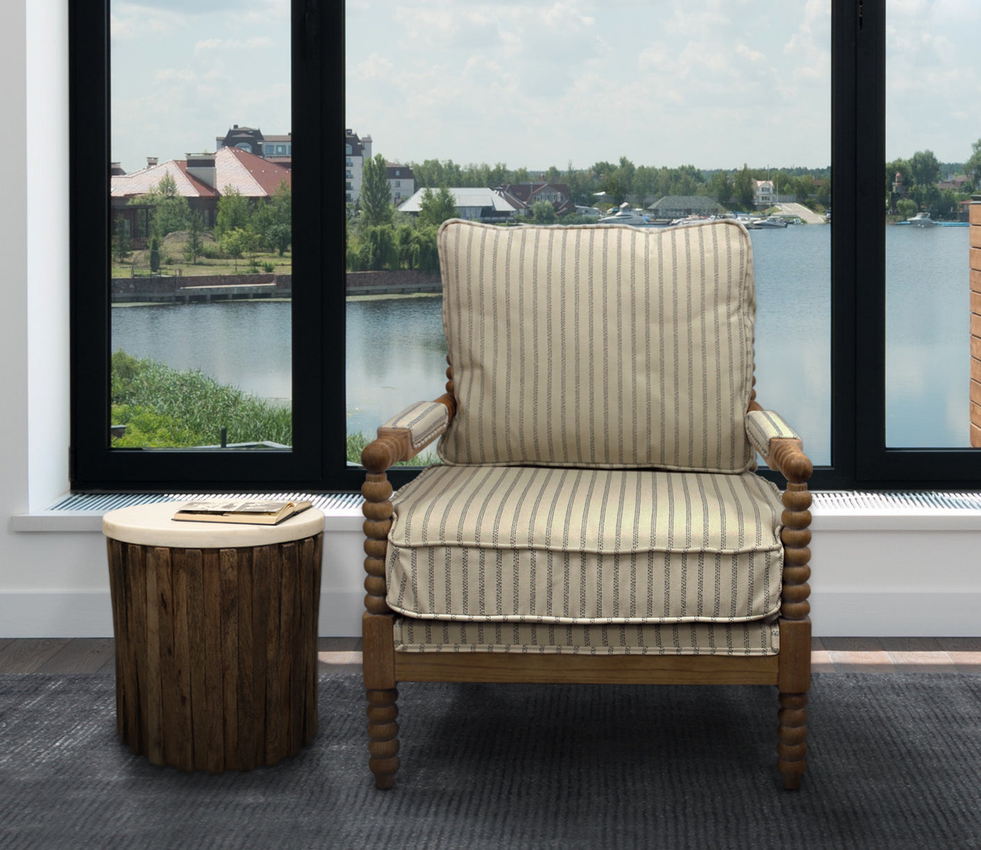 - Material Content : 100% polyester, oak wood, foam cushion