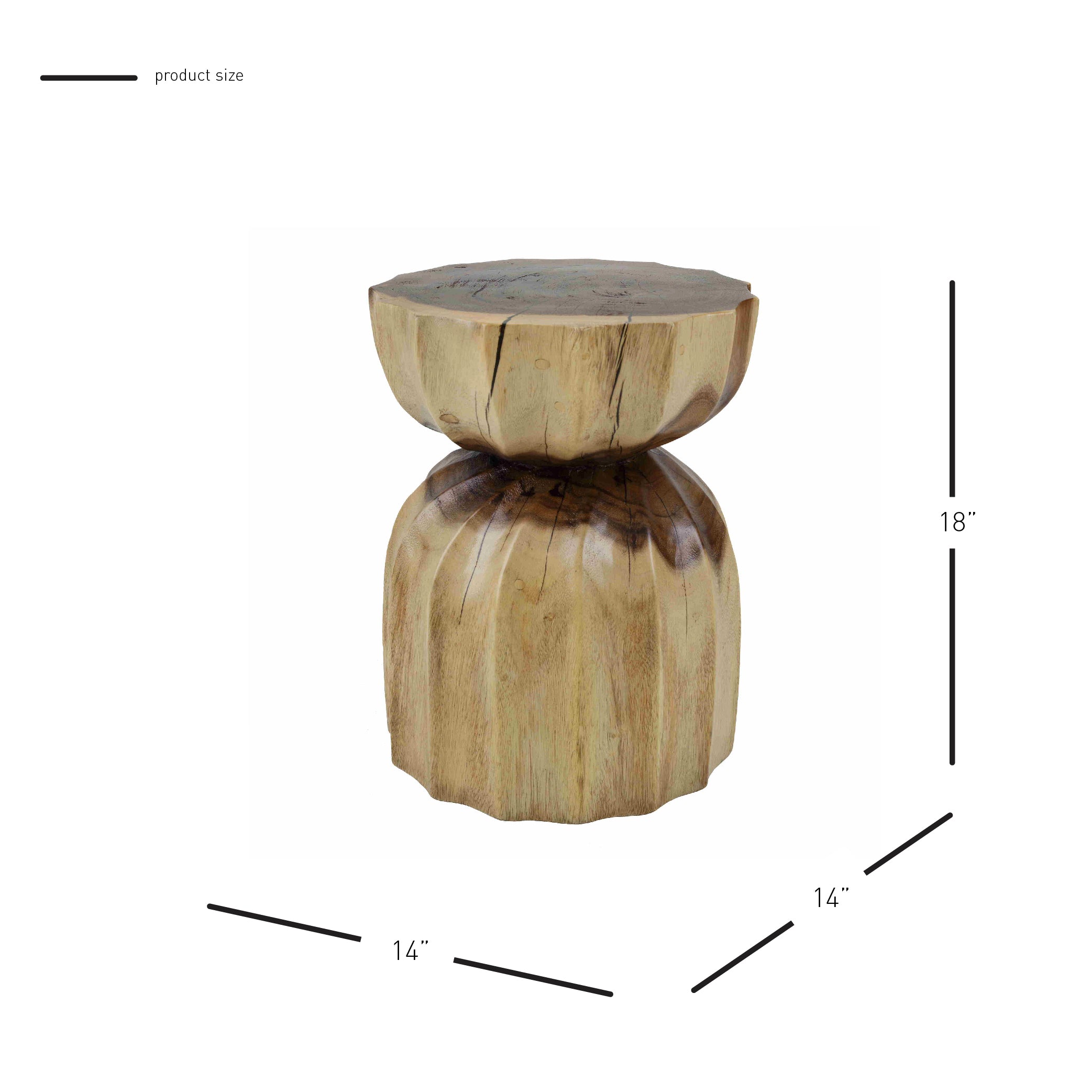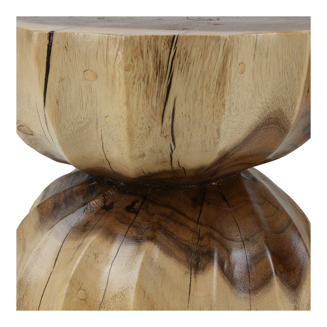 - Feature 1: This Hourglass shape table works double duty as a stool or side table. Skilled hands crafted the work of art made of solid Trembesi wood. Round and columnar in shape, expect slight variation in each piece.
