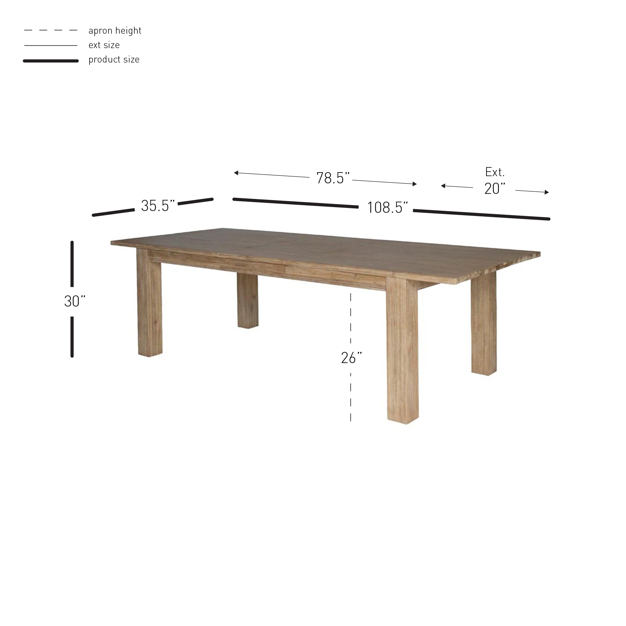 - Feature 1: STURDY RUSTIC + FARMHOUSE STYLE - Whether it’s Rustic Modern or Farmhouse Contemporary dining look that you’re looking to achieve, this versatile piece provides a suitable silhouette that’s easy to mix and match with different dining chairs or benches. With 78.5” w, can seat 6-8 people, extends another 20" to seat 8-10 people. Also features gorgeous solid Acacia wood frame from a sustainable Acacia plantation.