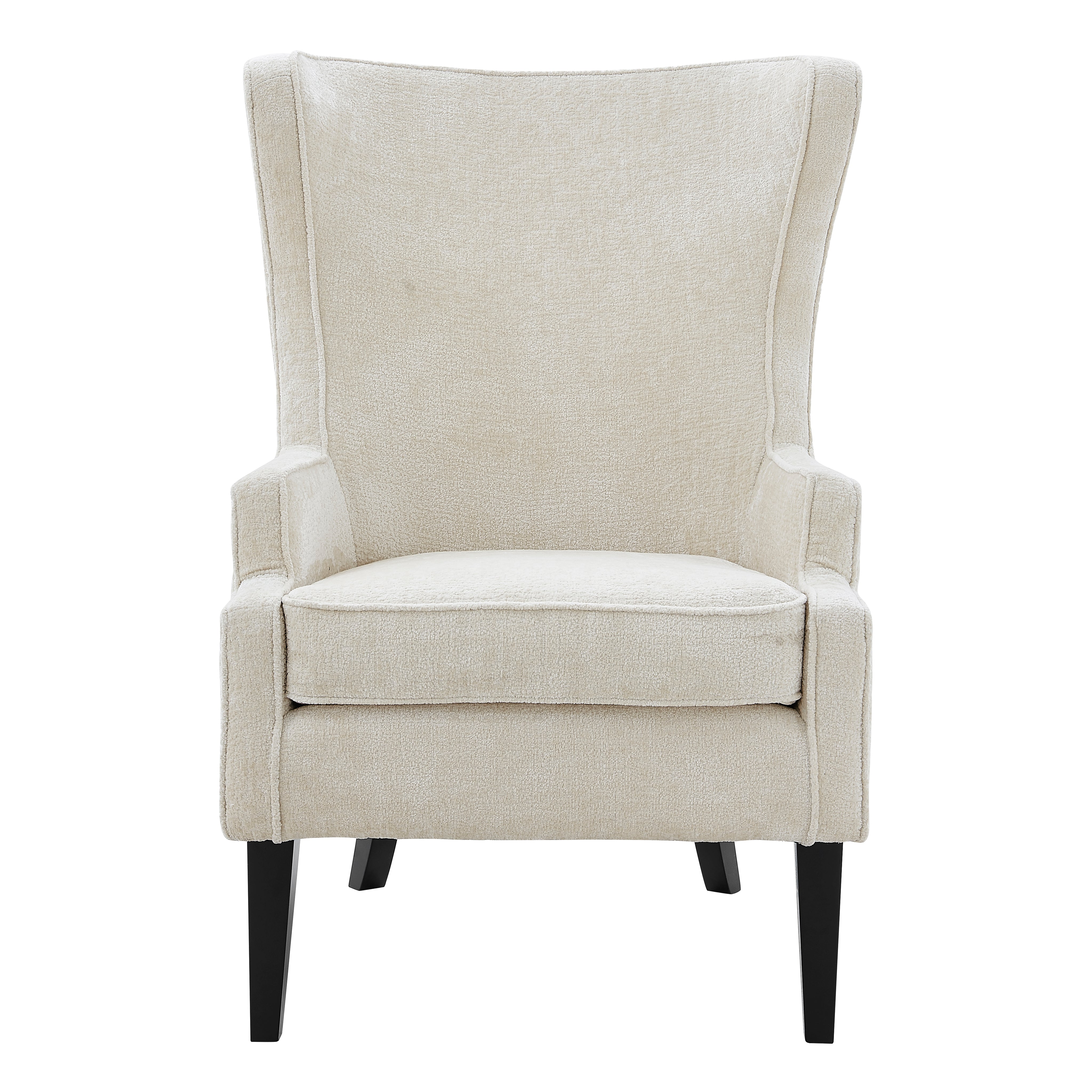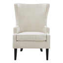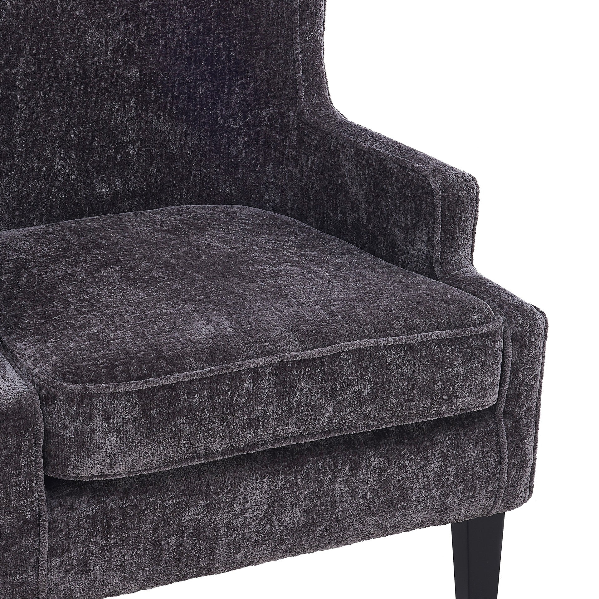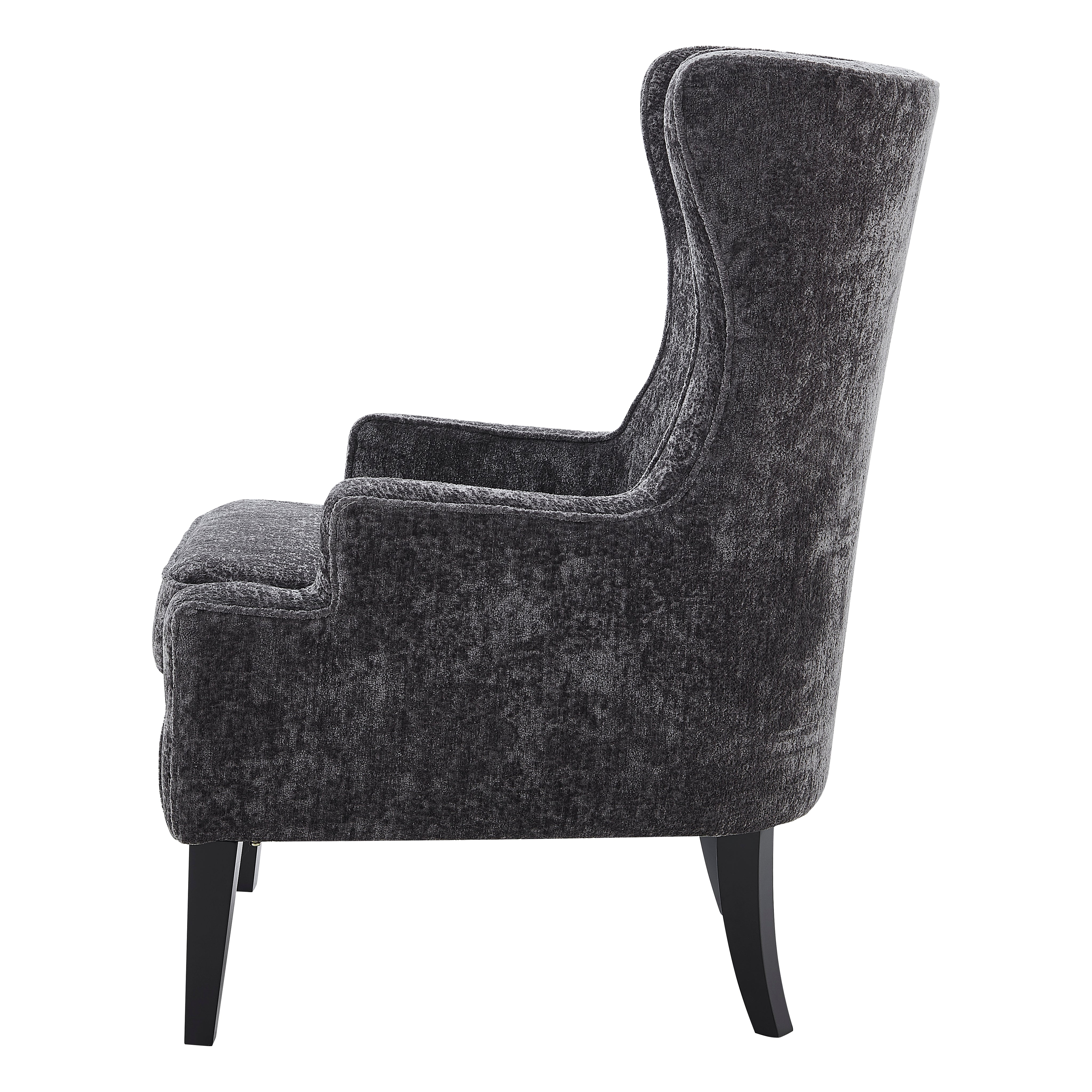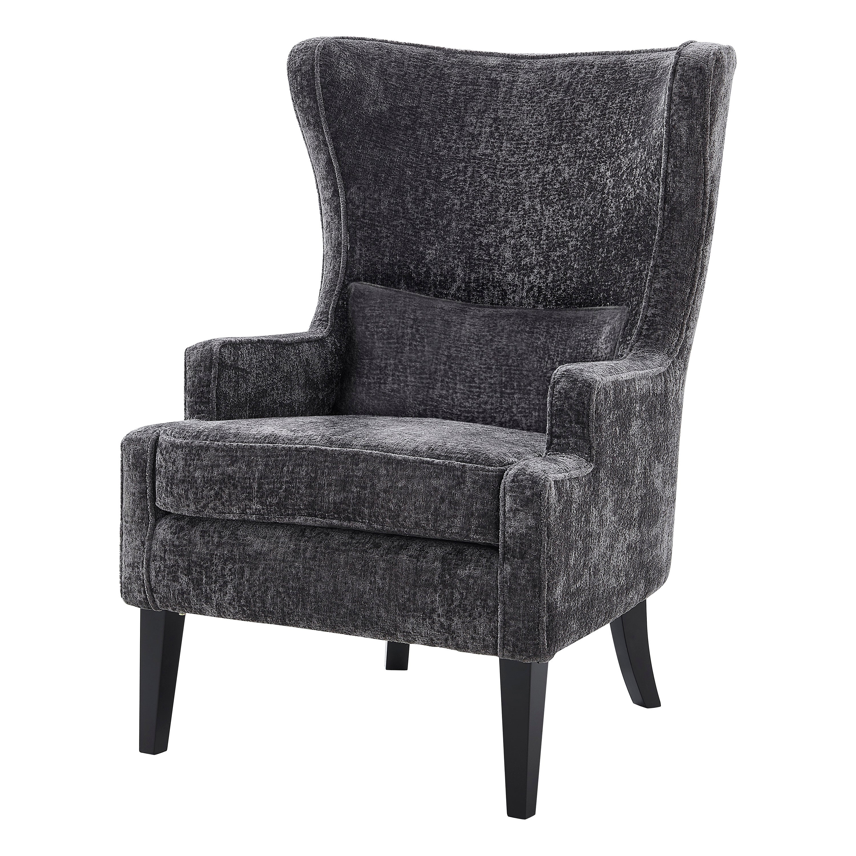 - Feature 1: Classic Wingback silhouette accent chair, updated with soft fabric upholstery, fashioned on painted Black legs made of solid Birch wood. Comfy and roomy, this chair also comes with one removable lumbar pillow. Removable velcroed seat cushion