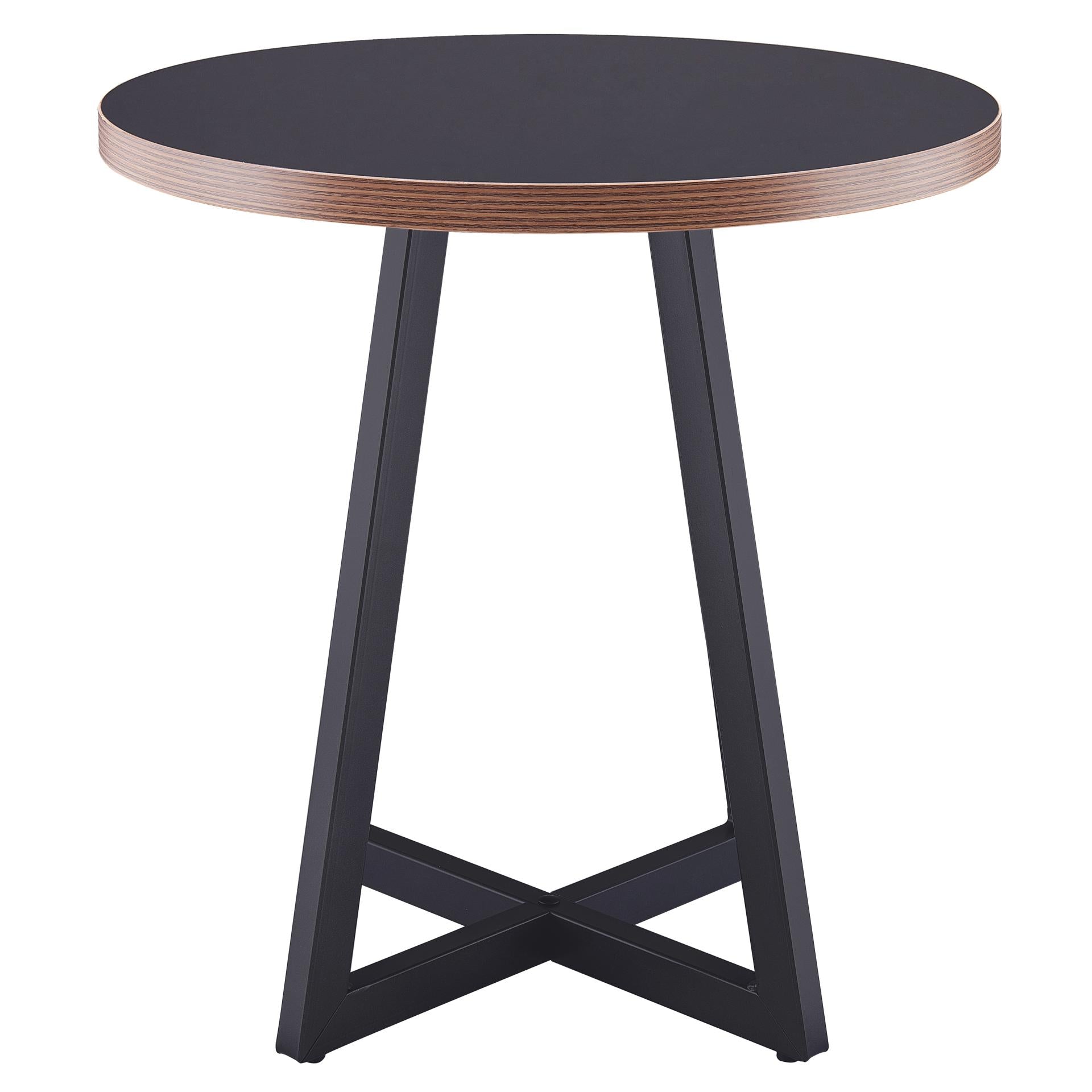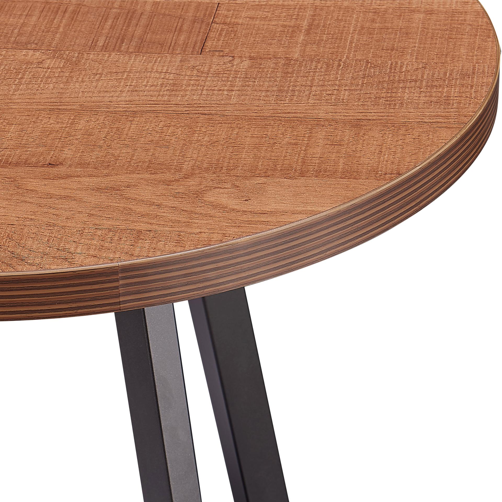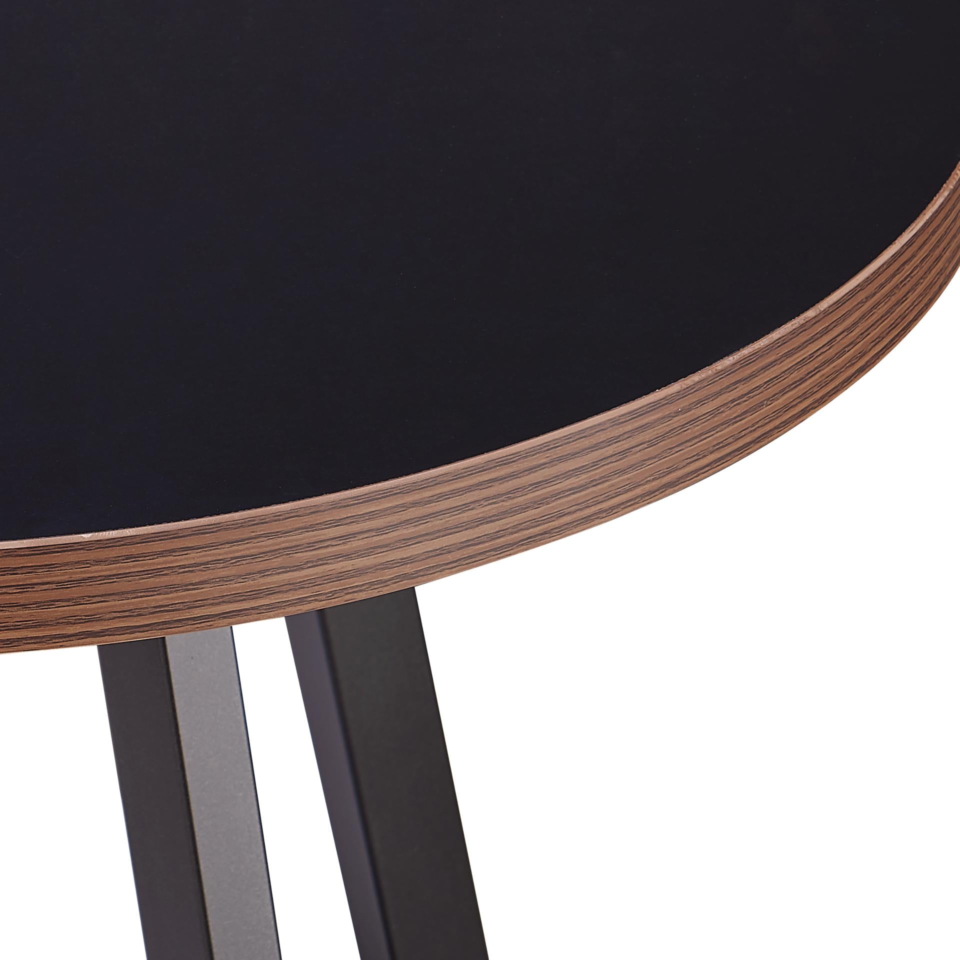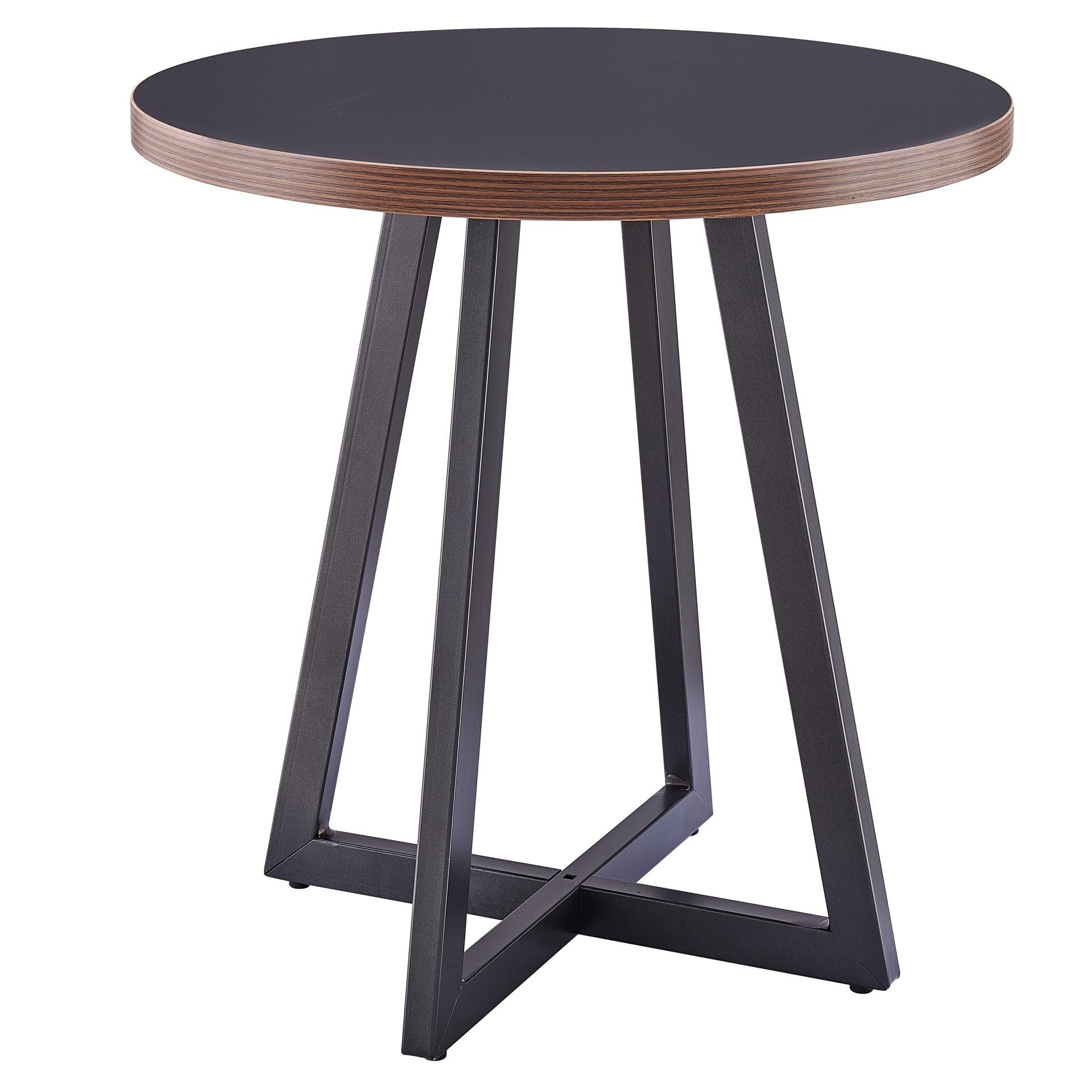- Feature 1: Modern Minimalist - round shape table top in sleek Brown melamine finish is complemented on angular metallic gunmetal powder coated steel legs. Stylish for the living room or the bedroom.