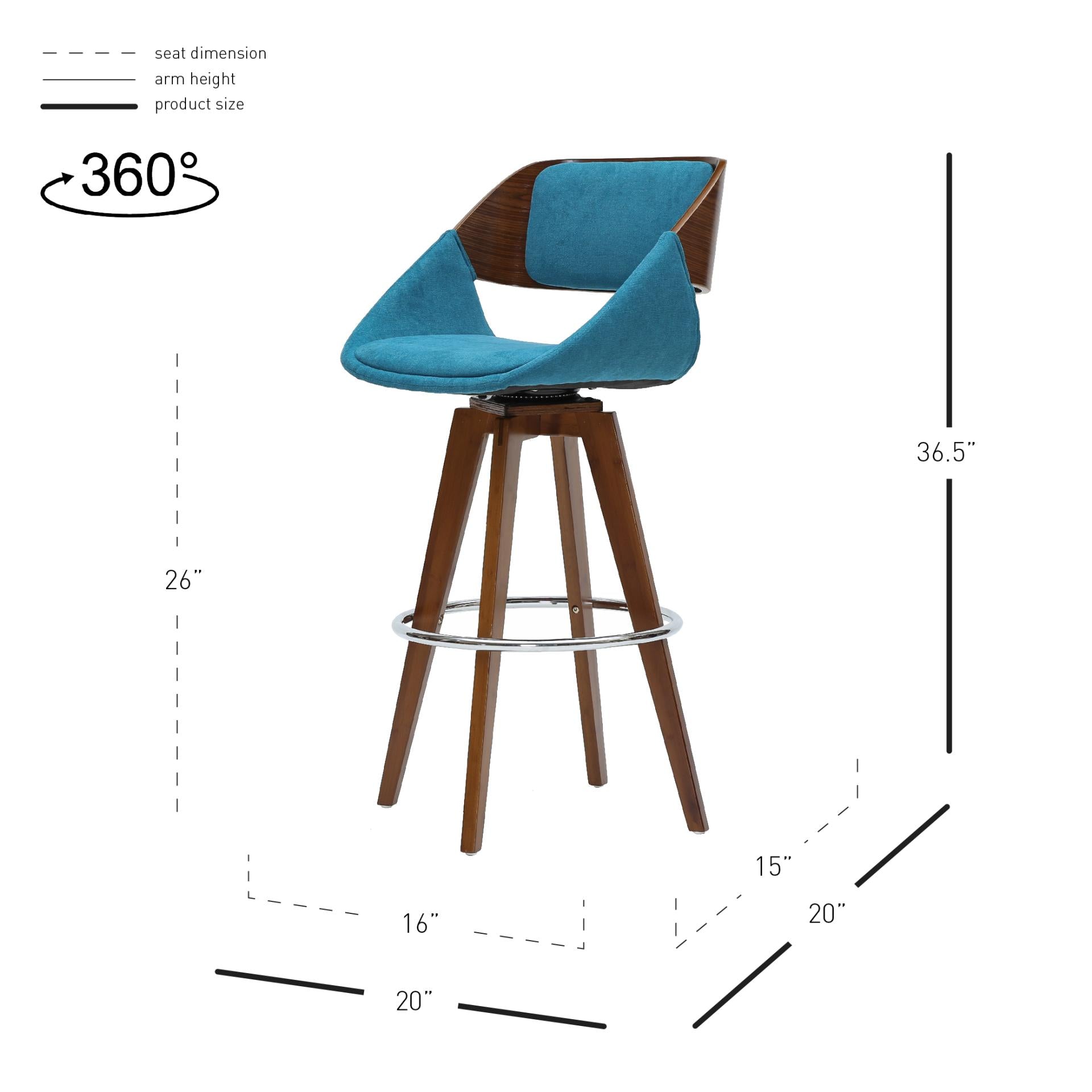 - Feature 1: Chic Mid-Century 360 degree swivel counter stool features cut-out back style with walnut bent wood and soft fabric for the back and seat cushions.