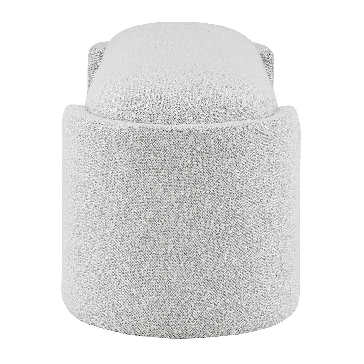 - Feature 1: Bring a dreamy vibe into the space with this charming pill shape bench. Fully covered and padded in on-trend boucle upholstery, floor glides are included for protection. A matching ottoman is sold separately.