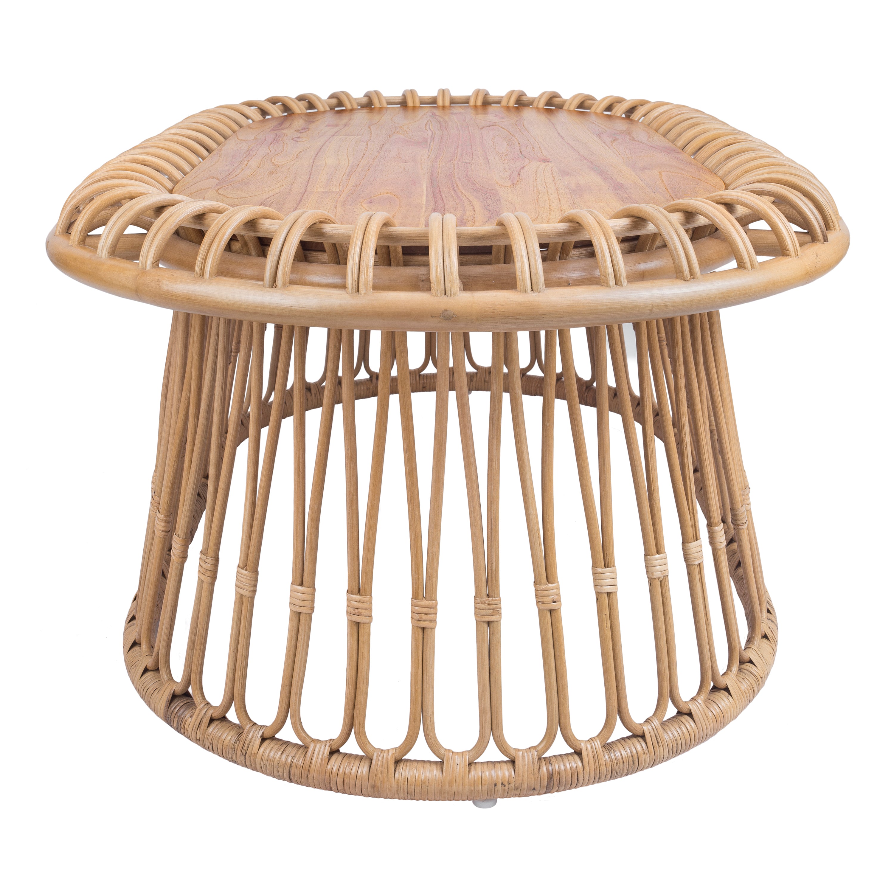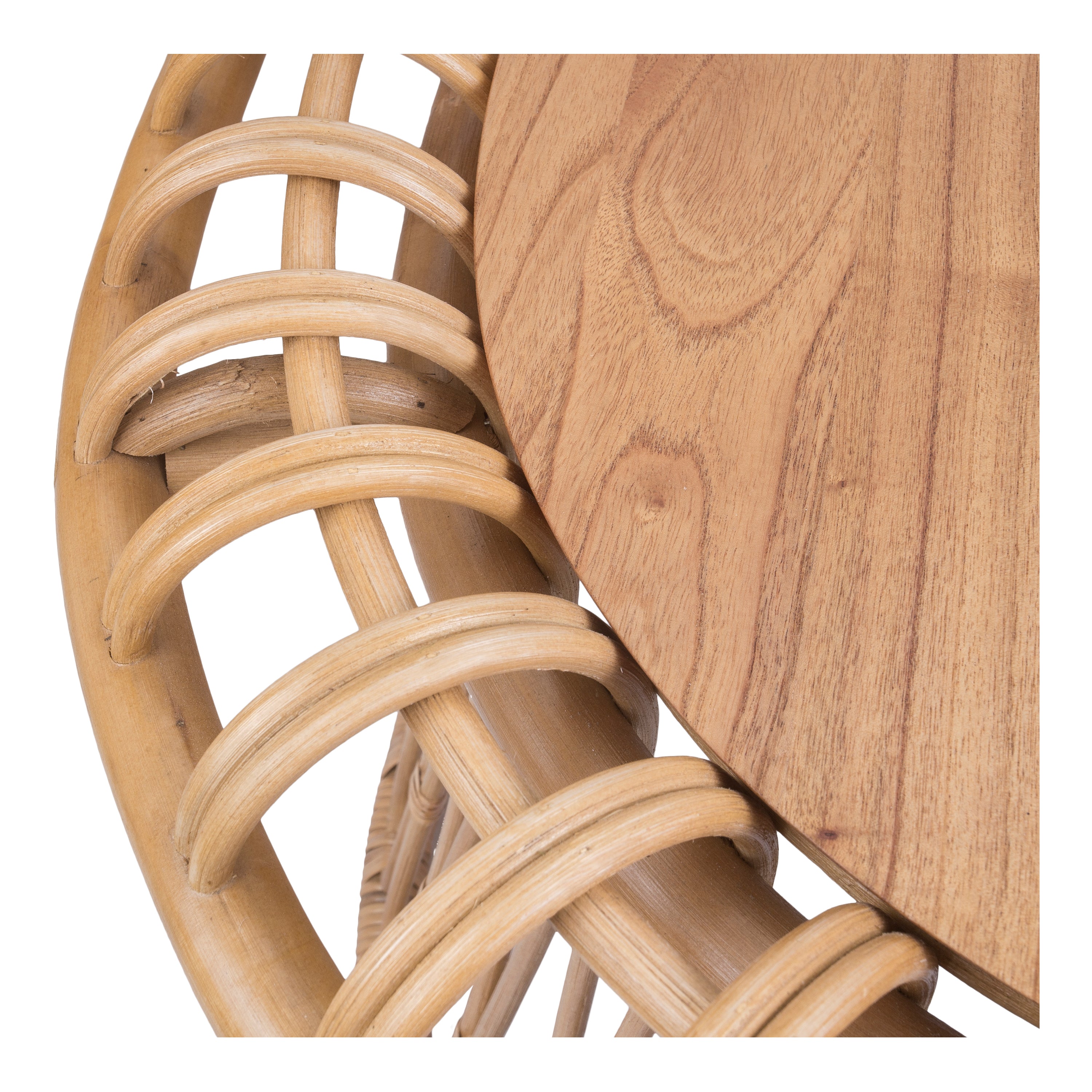 - Modernism meets Bohemian vibe with Galia collection. Indonesian artisans skillfully bent and wrapped rattan pieces to create sturdy side table that's also delightful for any space. In contemporary oval base, it's crafted of solid Mindi wood top and rattan. Plastic glides are included for safety and stability. Matching side table is available and sold separately.