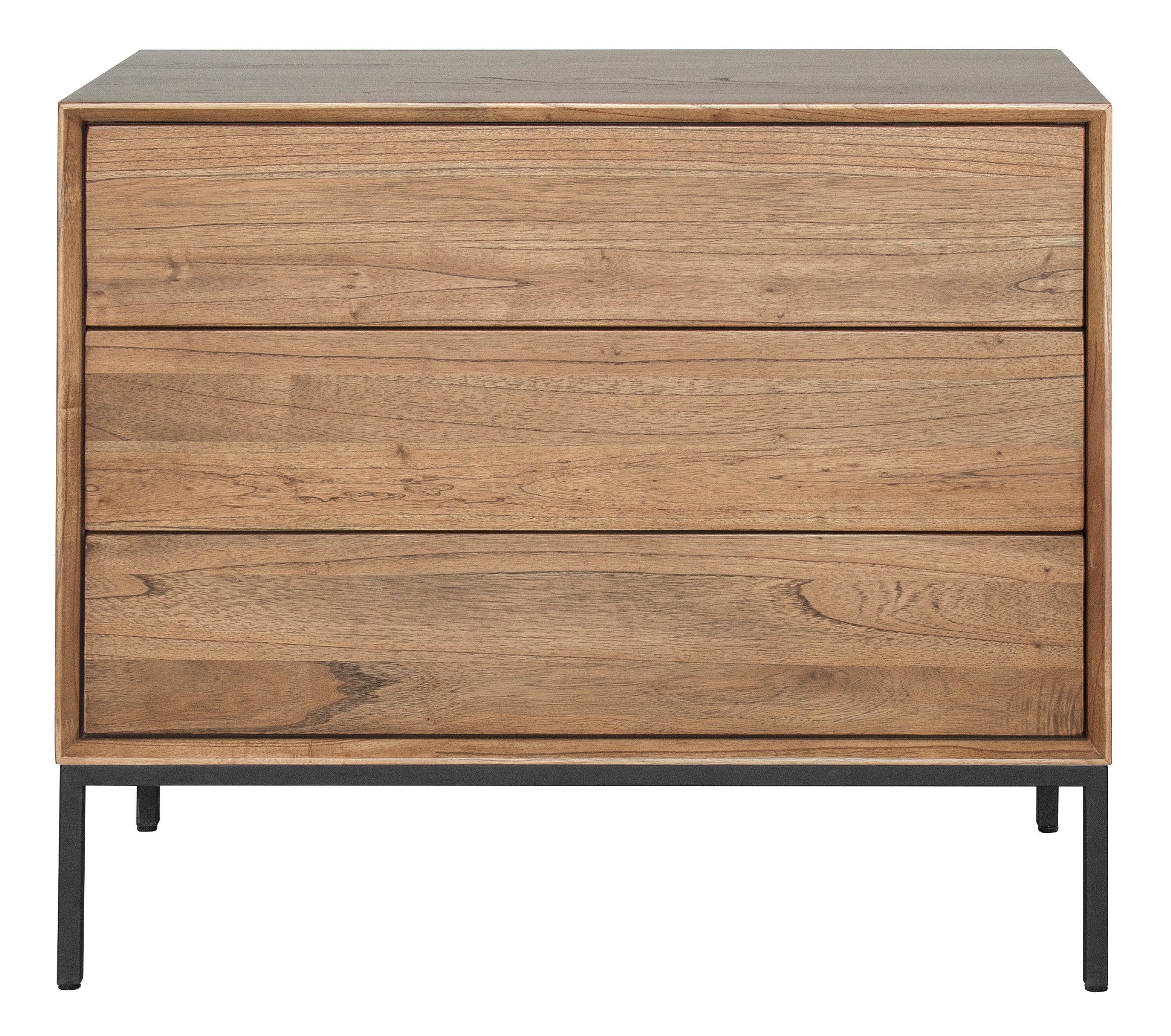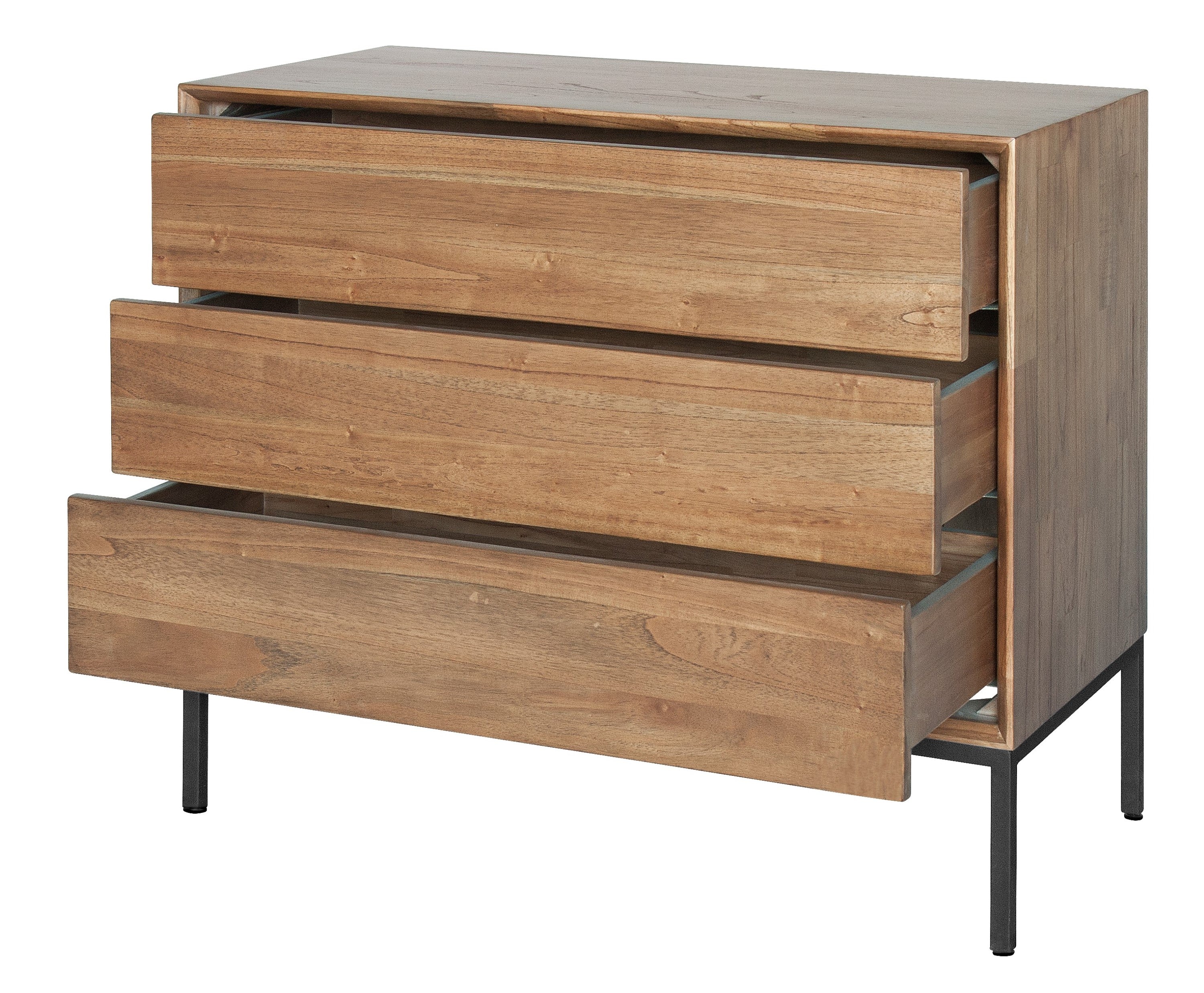 - Feature 1: Rustic Modern drawer bed set constructed of solid Mindi wood in a tiled arrangement panel, propped on minimalist powder coated steel legs. Includes push-to-open runners mechanism for soft open and close drawer slides.