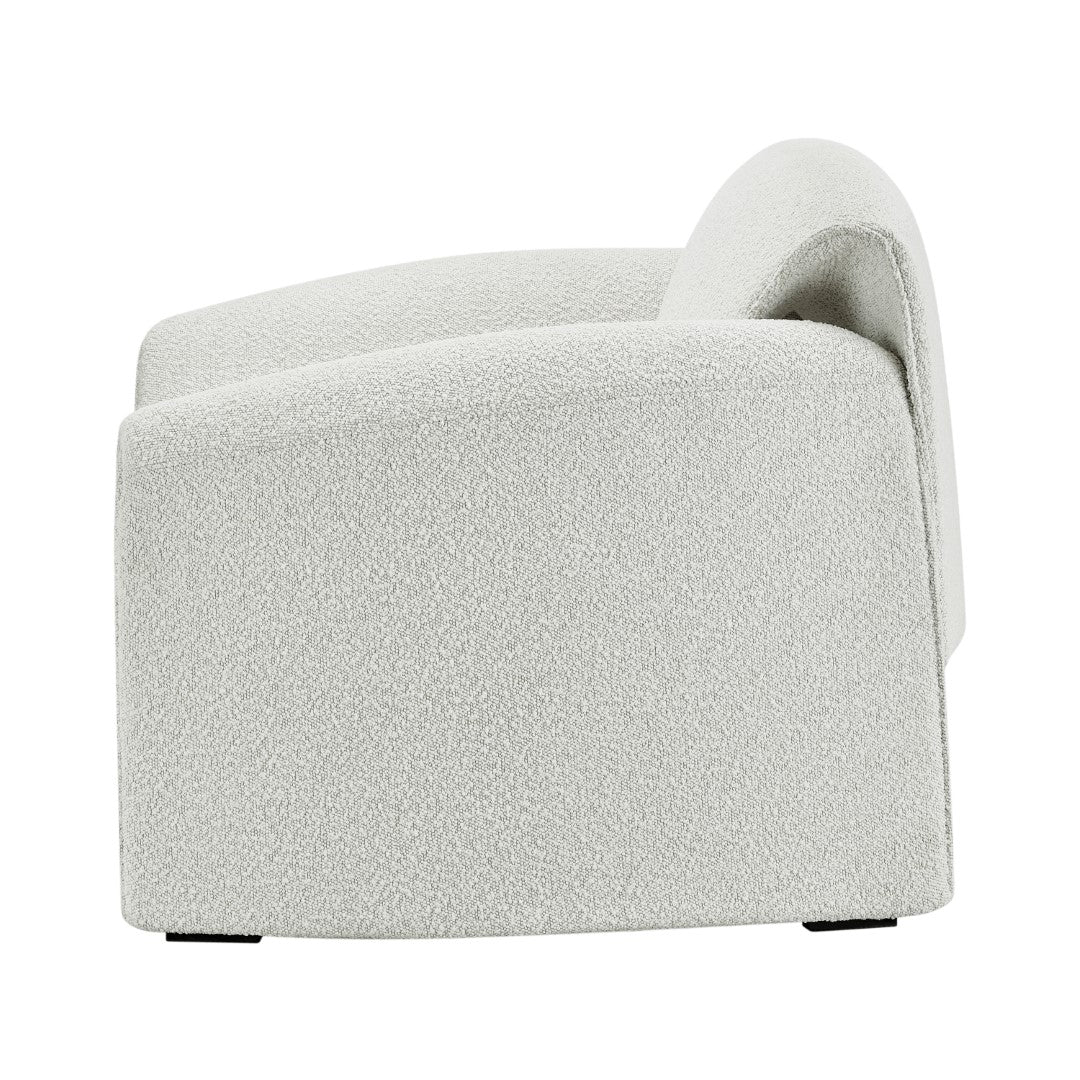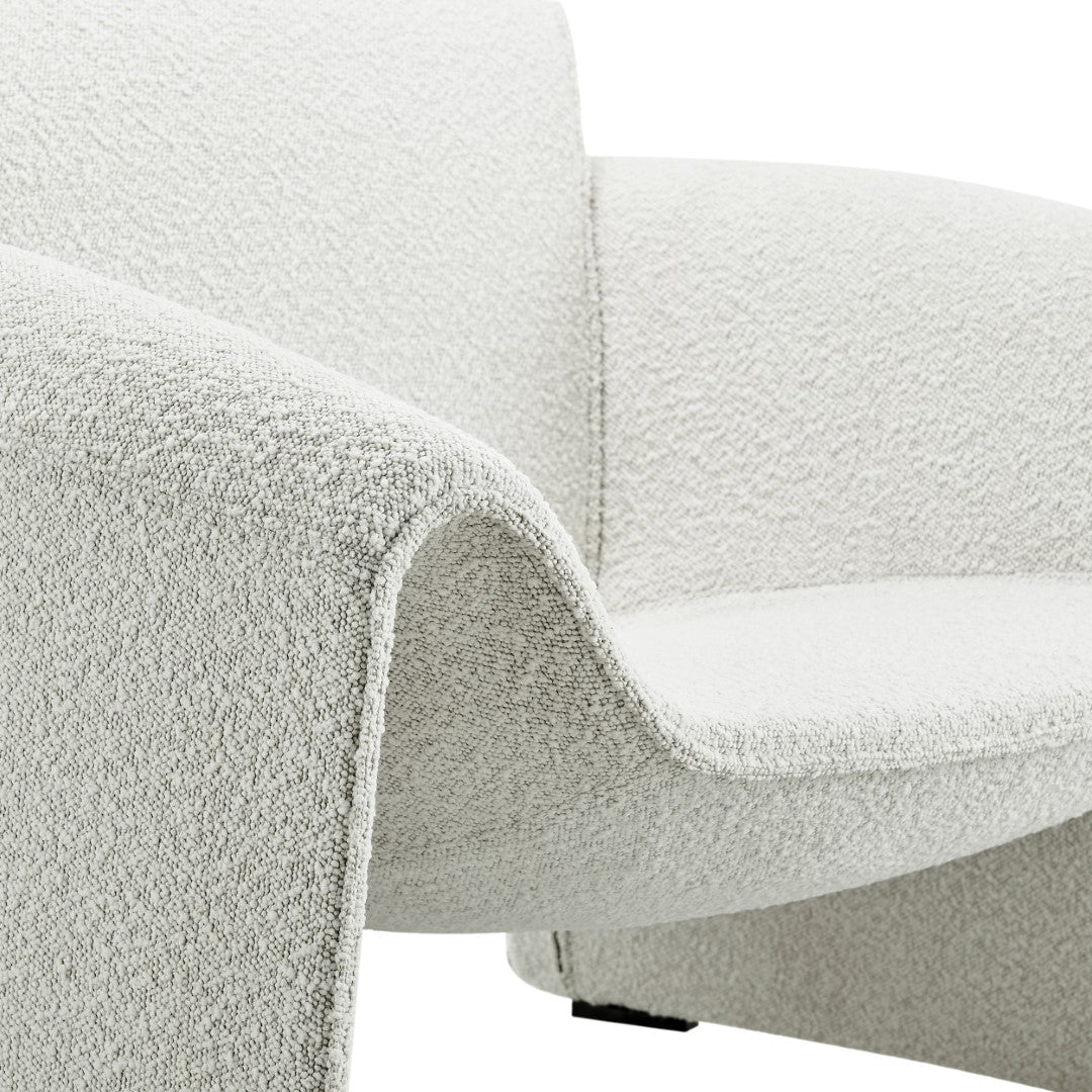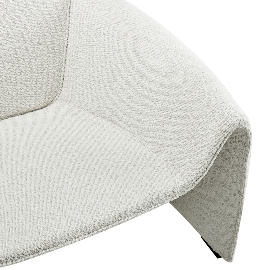 - Feature 1: For a statement-making style, this chair provides the vibe that highlights its symmetrical silhouette with desirable boucle fabric in beige color. Additionally, the entire frame is fully covered and padded in durable material.