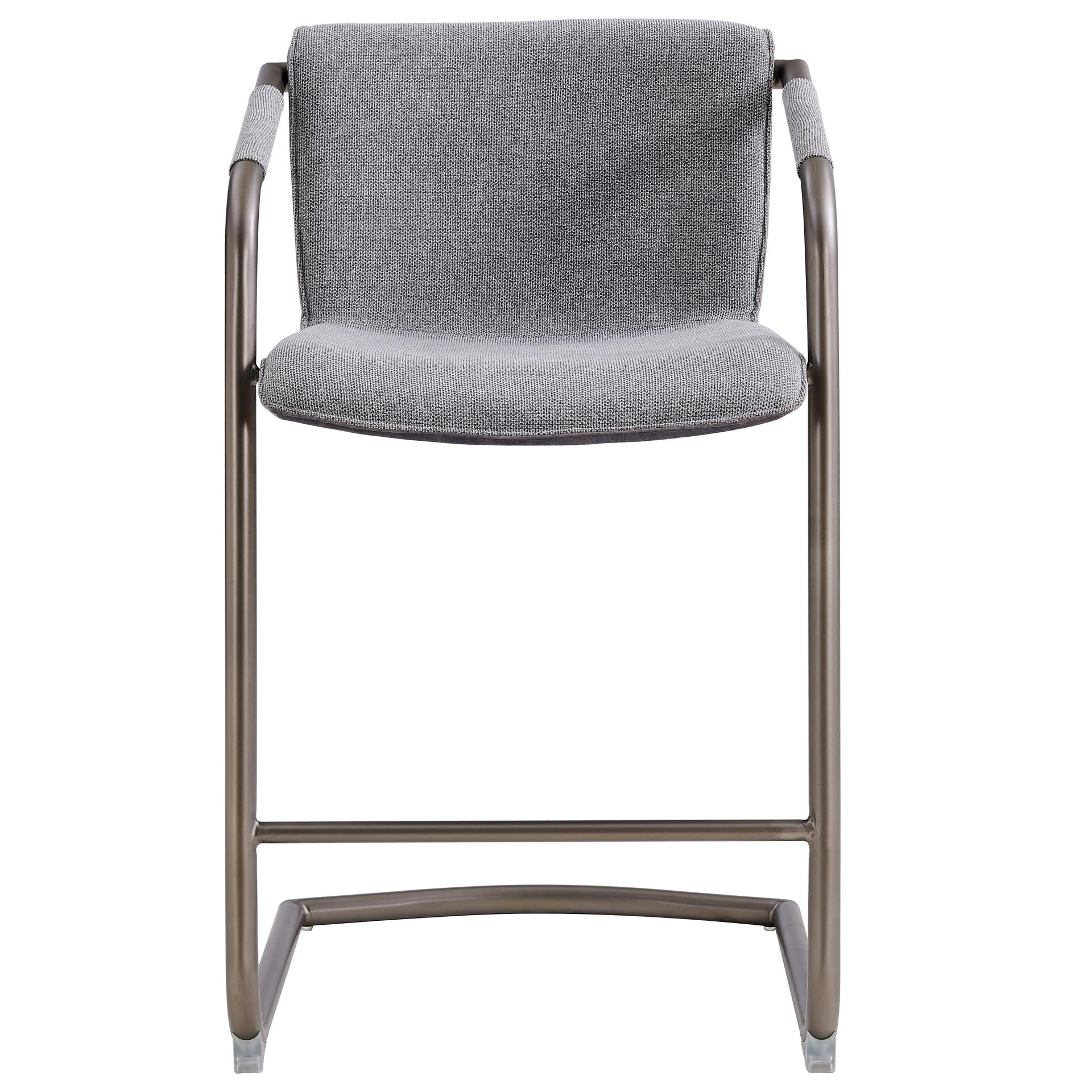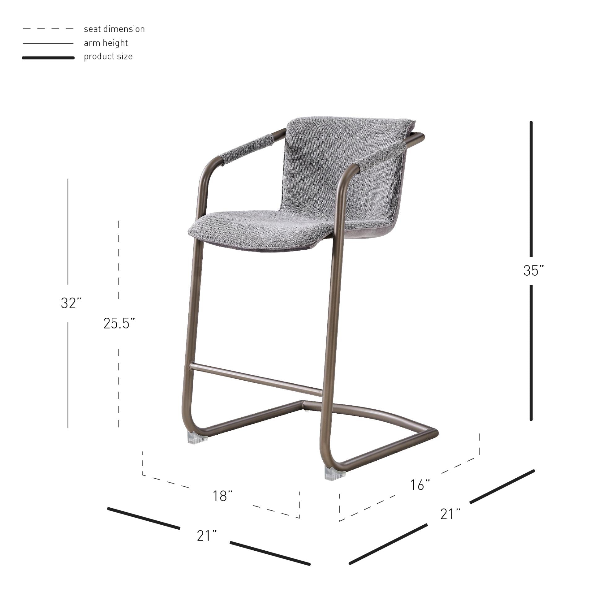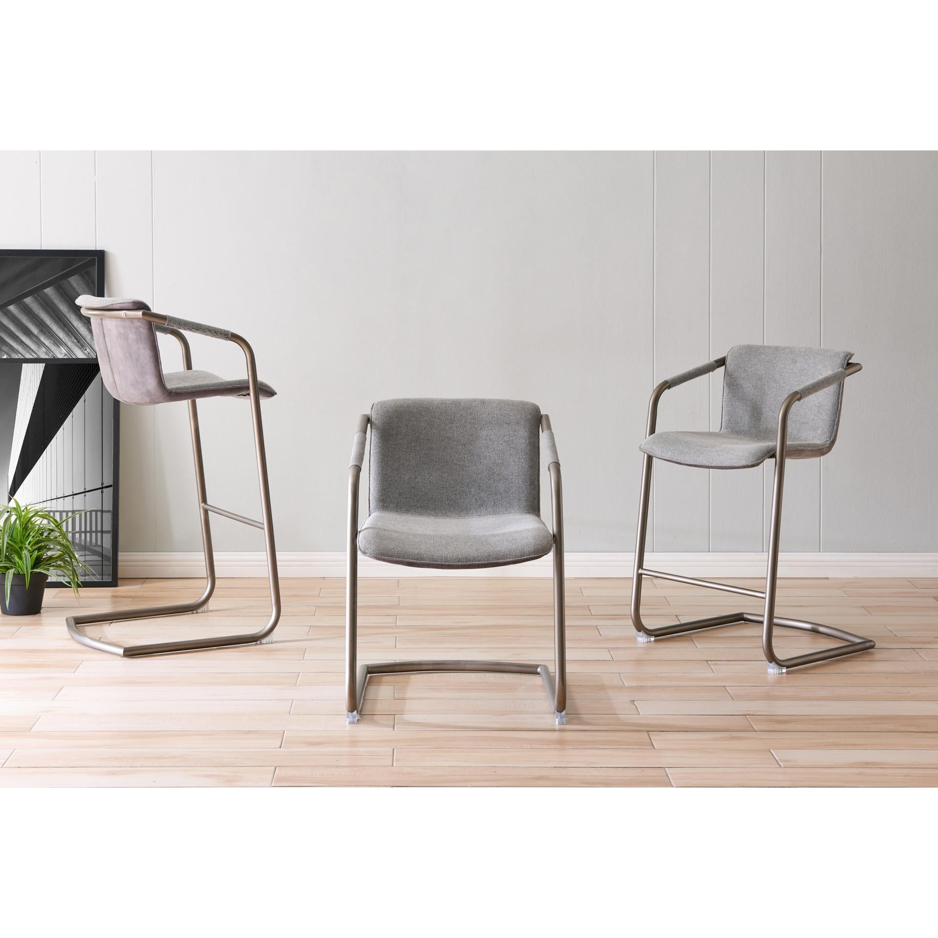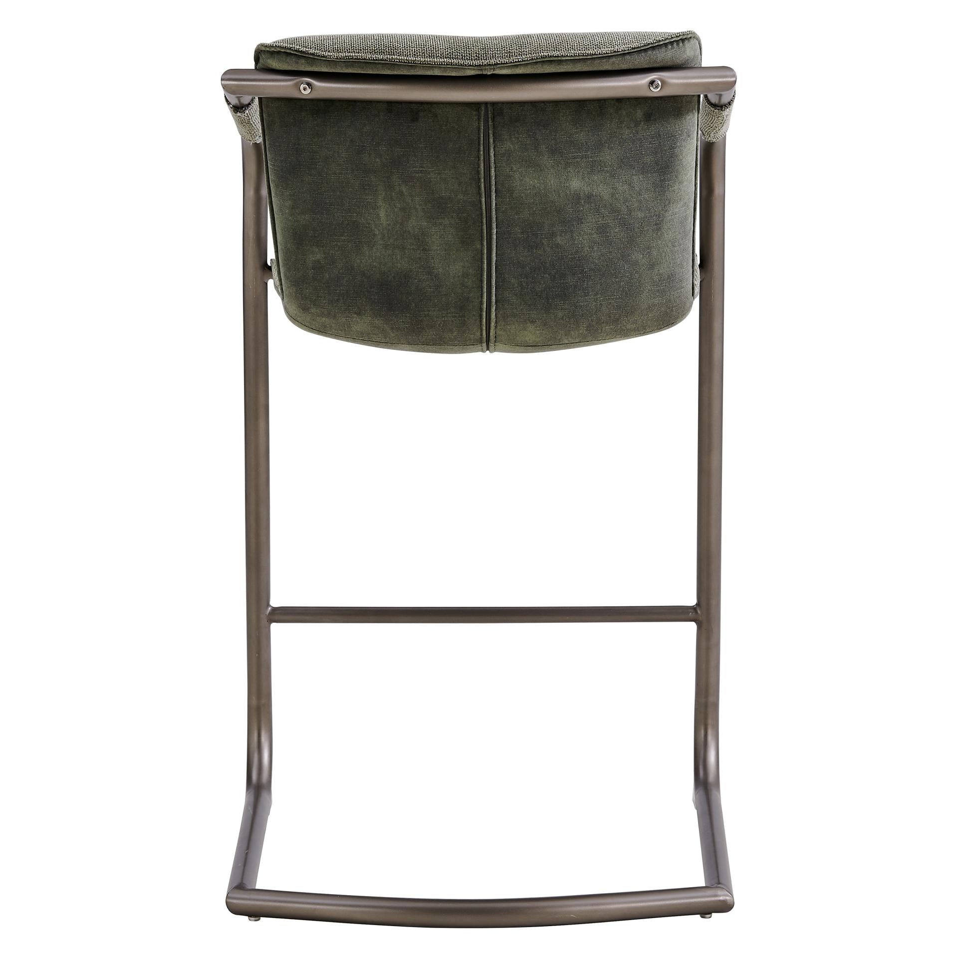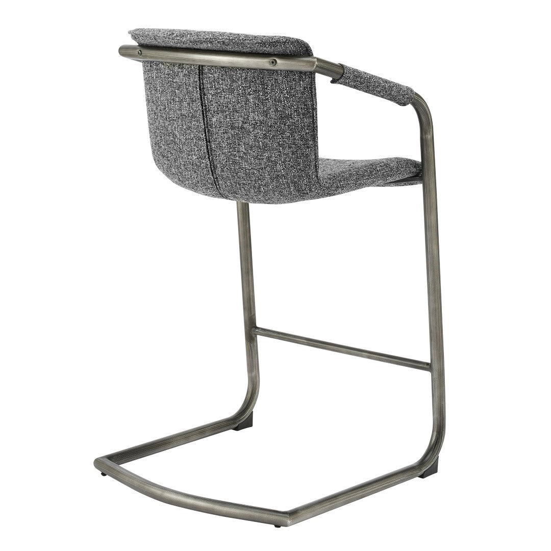 - Feature 1: INDUSTRIAL CHIC - Casual 35" h counter stool with stylish vintage hue upholstery and sleek wrapped arm detail on modern cantilever legs. Foot bar is incorporated for sturdiness.